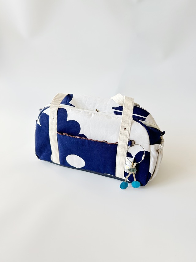 キャリーオンバッグMサイズです。 こちらは装着箇所が狭めのタイプですのでご注意ください。 size 19.5x 34.5cm(長い箇所を計測) マチ 底15.0cm ファスナー部分11.8cm 持ち手 64.0cm(カシメからカシメまで計測) 装着箇所幅 17.0cm(キャリーの持ち手幅の厚みがあるので、余裕をもってお選びください) 旅がもっと好きになる、あなただけの一点物。 キャリーの持ち手にスルッと通して使える キャリーオンバッグです。 両手が自由に使えて移動が楽ちん。 ドミット芯を挟んでるので、 ハリがあり、しっかりと自立します。 旅先でも毎日持ち歩きたくなる そんな気持ちで丁寧につくりました。 機内持ち込みサイズで、座席下にも入るサイズ感(詳しくは各航空会社でご確認くださいね)がうれしい。 キャリーバッグ接続箇所は幅が17.0cmです。 (ご自身のキャリーバックの持ち手幅をご確認ください。キャリーの持ち手の厚みを考慮して余裕を持ってお選びください) 前は、大きなポケット(11.2x17.0cm)が付いてます。 ことりっぷなど小さめの旅の情報誌がすっぽりと入ります。 ポケット横にはかわいいオリジナルタブとさくらんぼとハートのチャームが付いてます。 チャームは取り外し可能で、Dカンにお気に入りのぬいぐるみや、イヤホンケースなど付けることも出来ます。 両サイドに入り口がゴム仕様のギャザーポケットが付いてます。 すぐに取り出したい定期券やティッシュなど入れるのに便利です。 全体にドミット芯を挟んでますので、かっちりと自立します。 内袋は、トリコロールカラーのヨット柄です。 北欧のヴィンテージ生地とバランスがよく、全体的に爽やかな色合いでまとめてます。 2つに分かれてる大きなポケットが付いてます。 小さい方にペン、大きい方に手帳などを収納するイメージで作りました。 もう片側にも大きなポケットが付いてます。 スマホや定期券などすぐに取り出したいものを入れるのに便利です。 内側もDカン付きなので、無くしたくないカギとかを引っかけておけます。 Mサイズは底板を付けてないので、荷物が少ない時はペタンコにしてトートバッグみたいに持ってもかわいいです。 ファスナーは、両開き40cmでサイドにタブが付いてます。 マチは、サイドにかけて緩やかな台形になっていて横から見るとぽってりとした形になりキュートです。 撮影小物は非売品です。 送料無料です。 こちらは、小さめのキャリー向きです。 装着箇所をご確認くださいね。 最後の写真は同じサイズのキャリーオンバッグ を持ってるものです。大きさの参考にしてください。 撮影に使用してるキャリーバッグは、底のタイヤをいれて約60cmなものと約50cmのものを使用してます。