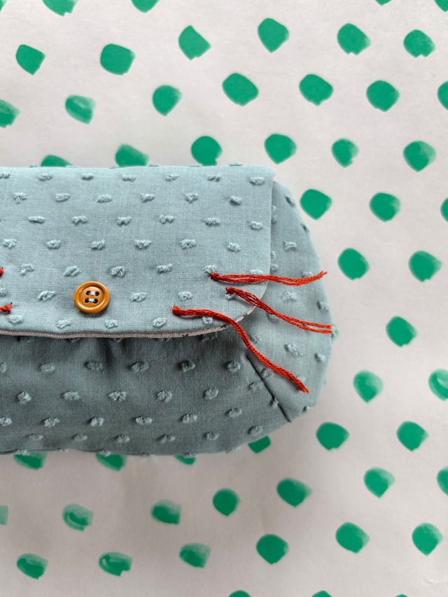 size H 10.5 × W 15.5 cm ネコの形をしたポーチです。 底にはダーツがはいっており、ポッコリと下した立体的な形になります。 表は、C&Sのドットミニヨンです。 内側は、星柄のリバティ布地を使用しています。 表のボタンは飾りボタンで、 内側にはスナップボタンがついています。 リップクリームや小物入れとして便利なサイズ感で、日常使いにピッタリです! 普段使いはもちろん、ちょっとした贈り物にも喜ばれる、キュートで実用的なねこ型ポーチです