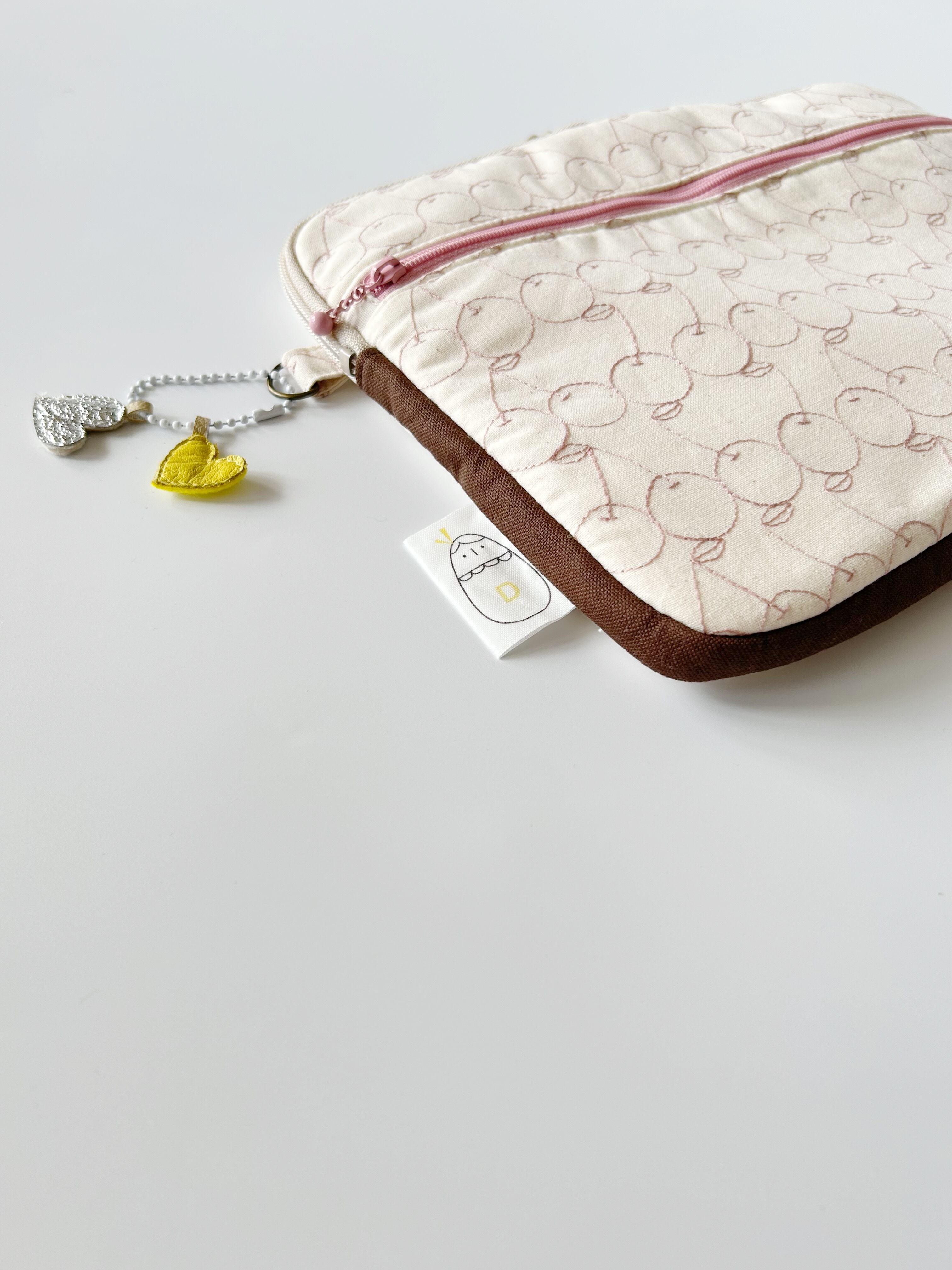 サイドのDカンにハートのチャームが付いてます(ポールチェーンで取り外し可能)。