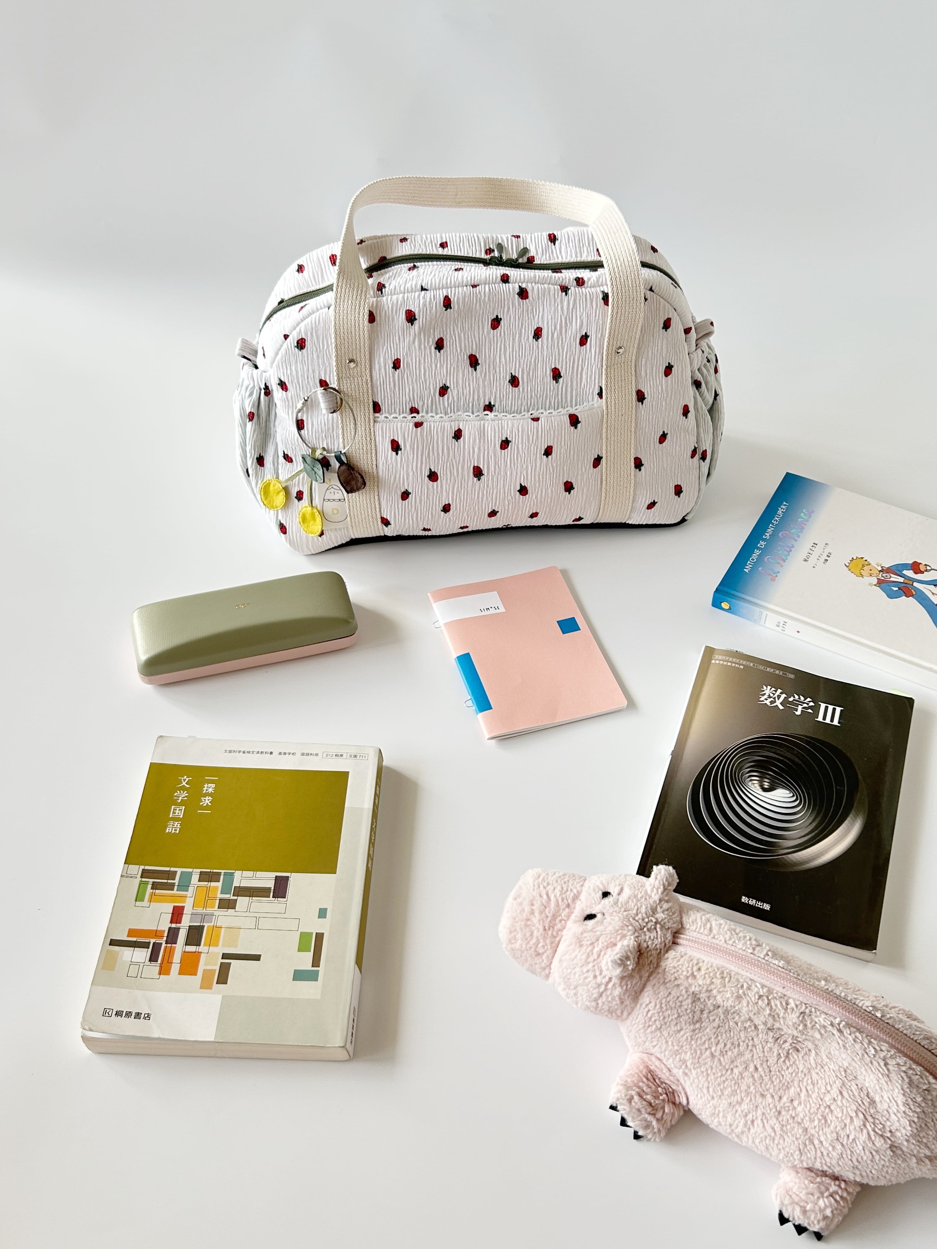 底板を付けてないので、荷物が少ない時はペタンコにしてトートバッグみたいに持ってもかわいいです。