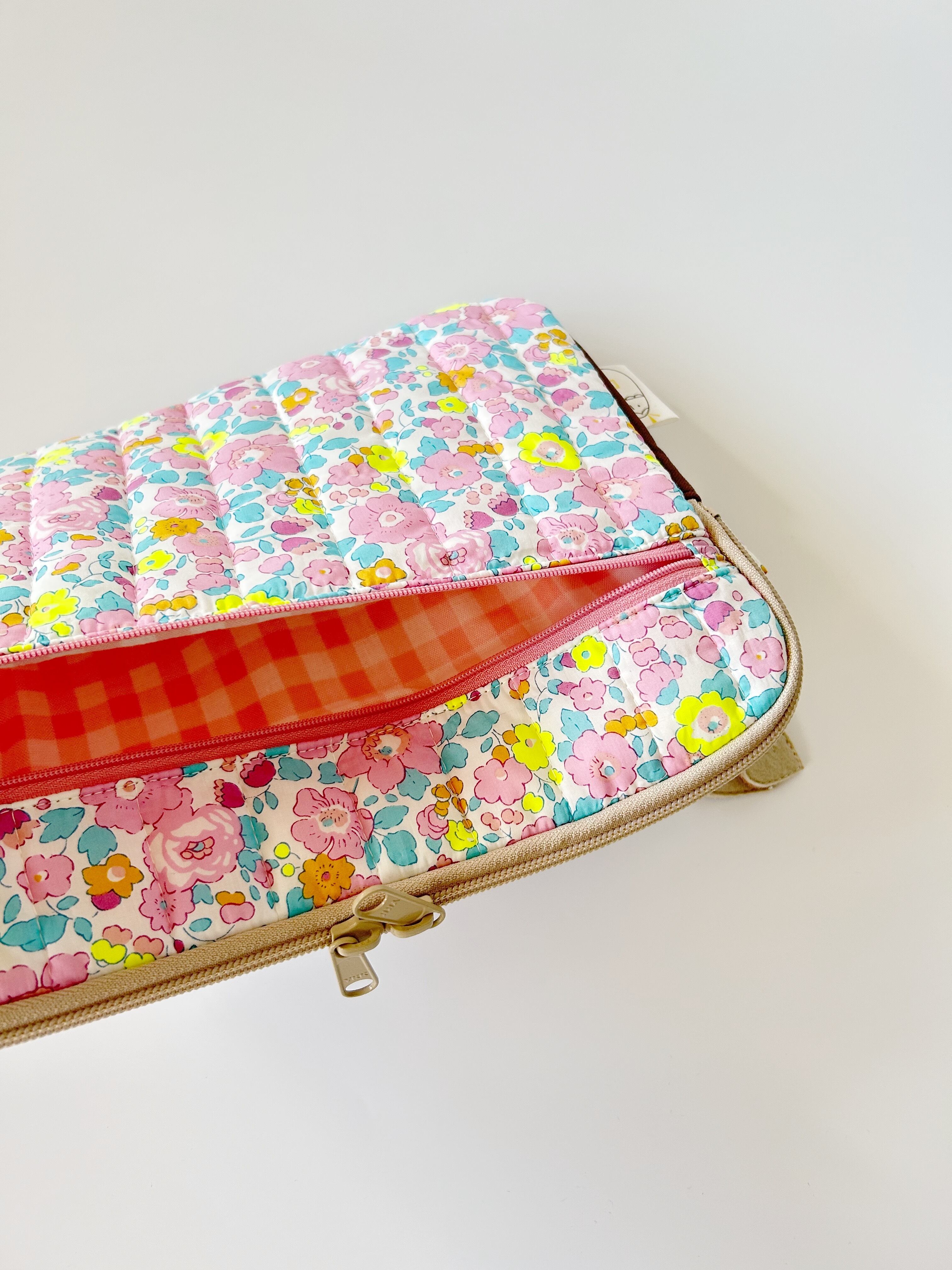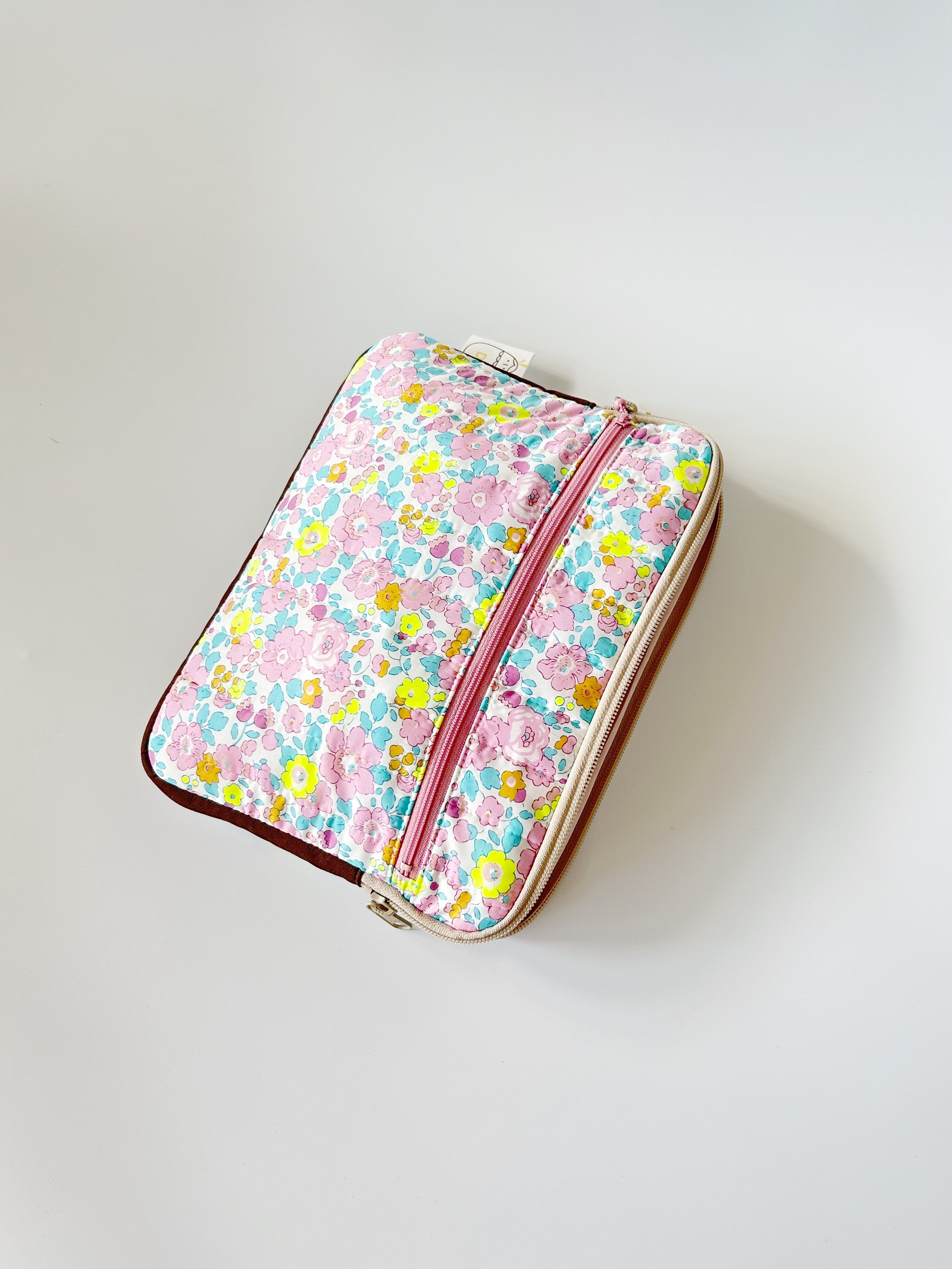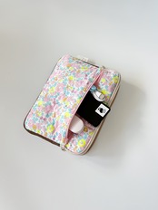内側は、ピンク色x白色のチェック柄のガーゼ生地でふかふかです。