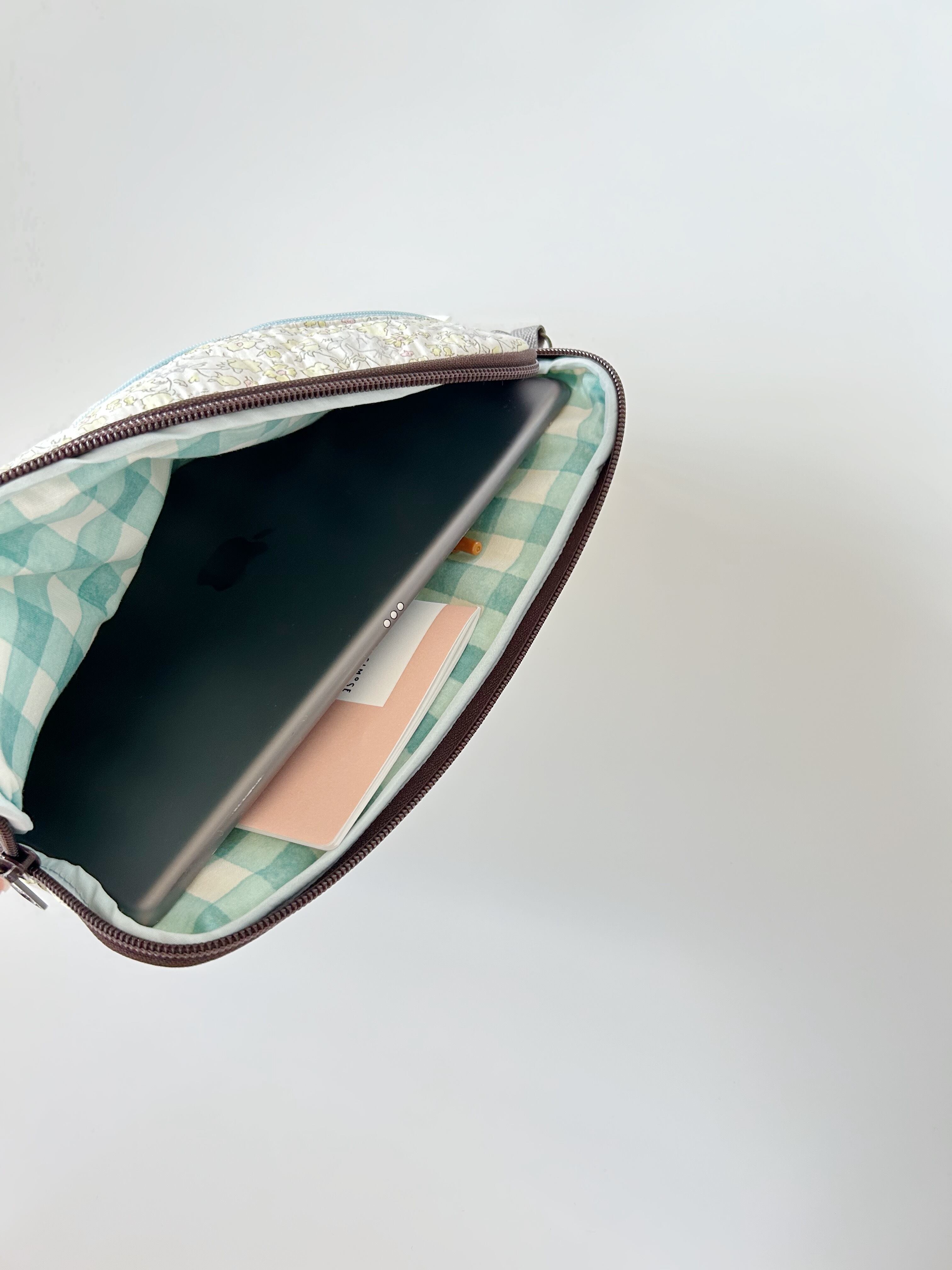 内側は、水色x白色のチェック柄のガーゼ生地です。