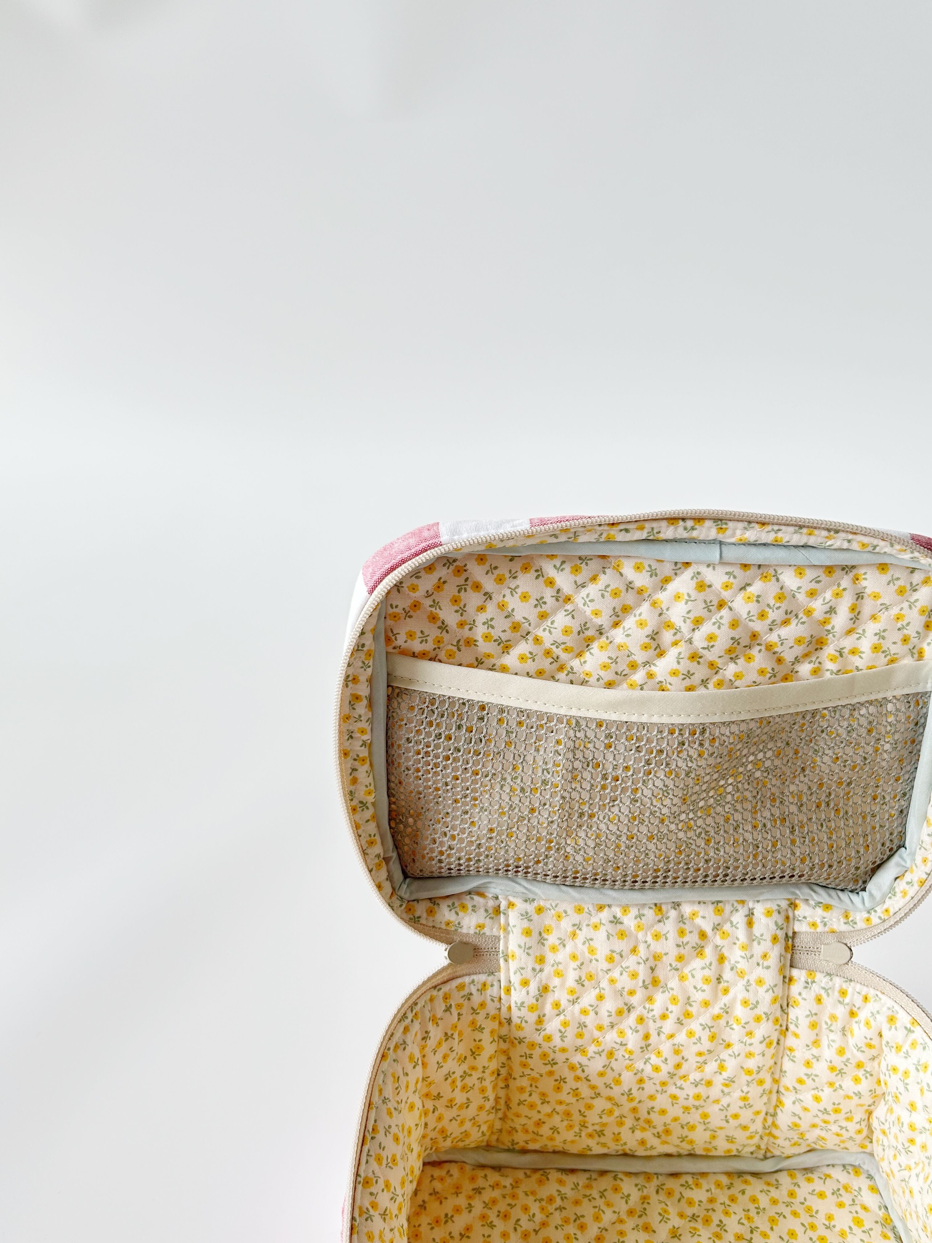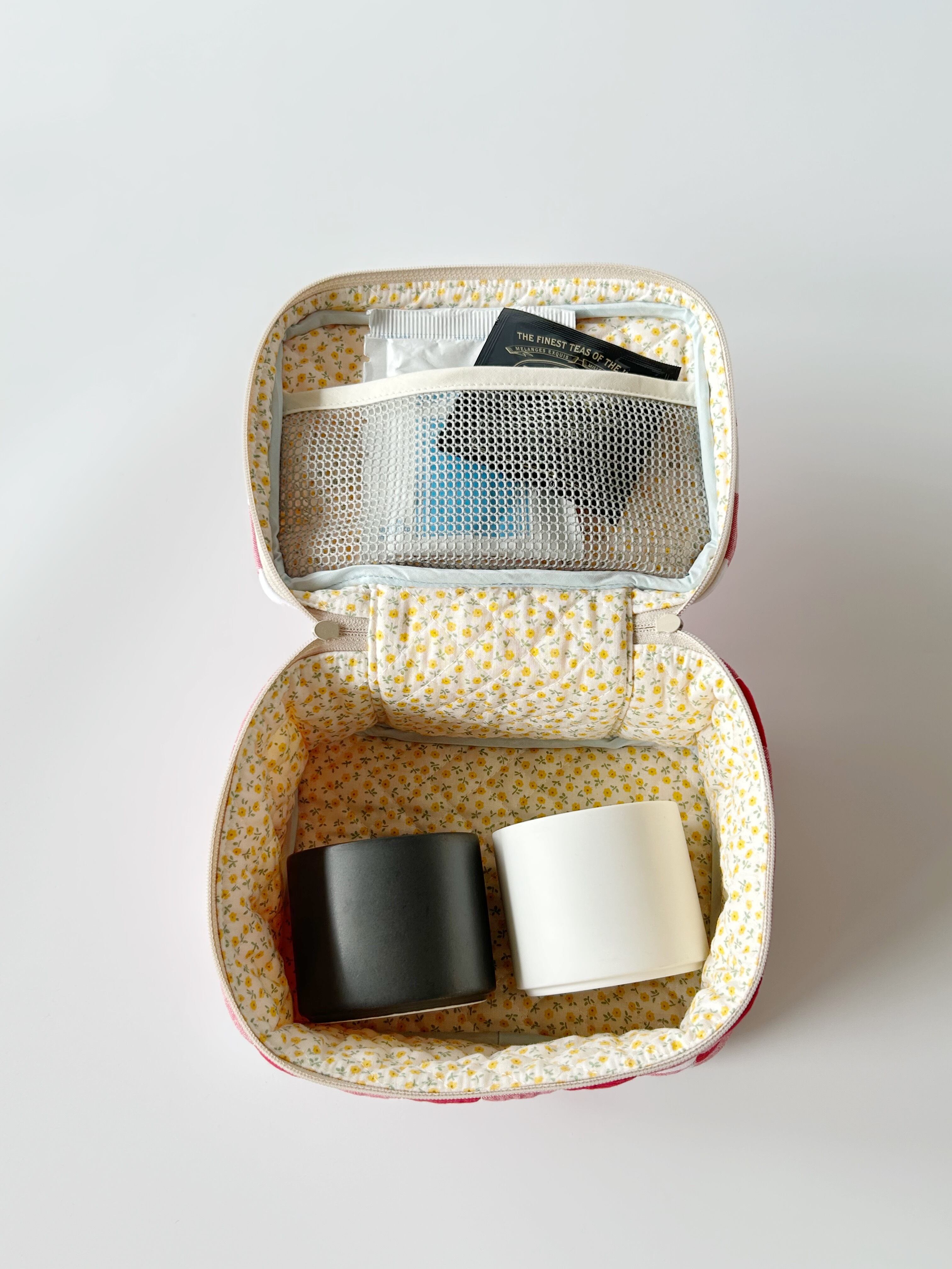 大きく開く設計により、物の出し入れが容易です。化粧品や小物、旅行中に必要なアイテムをたっぷり収納できます。