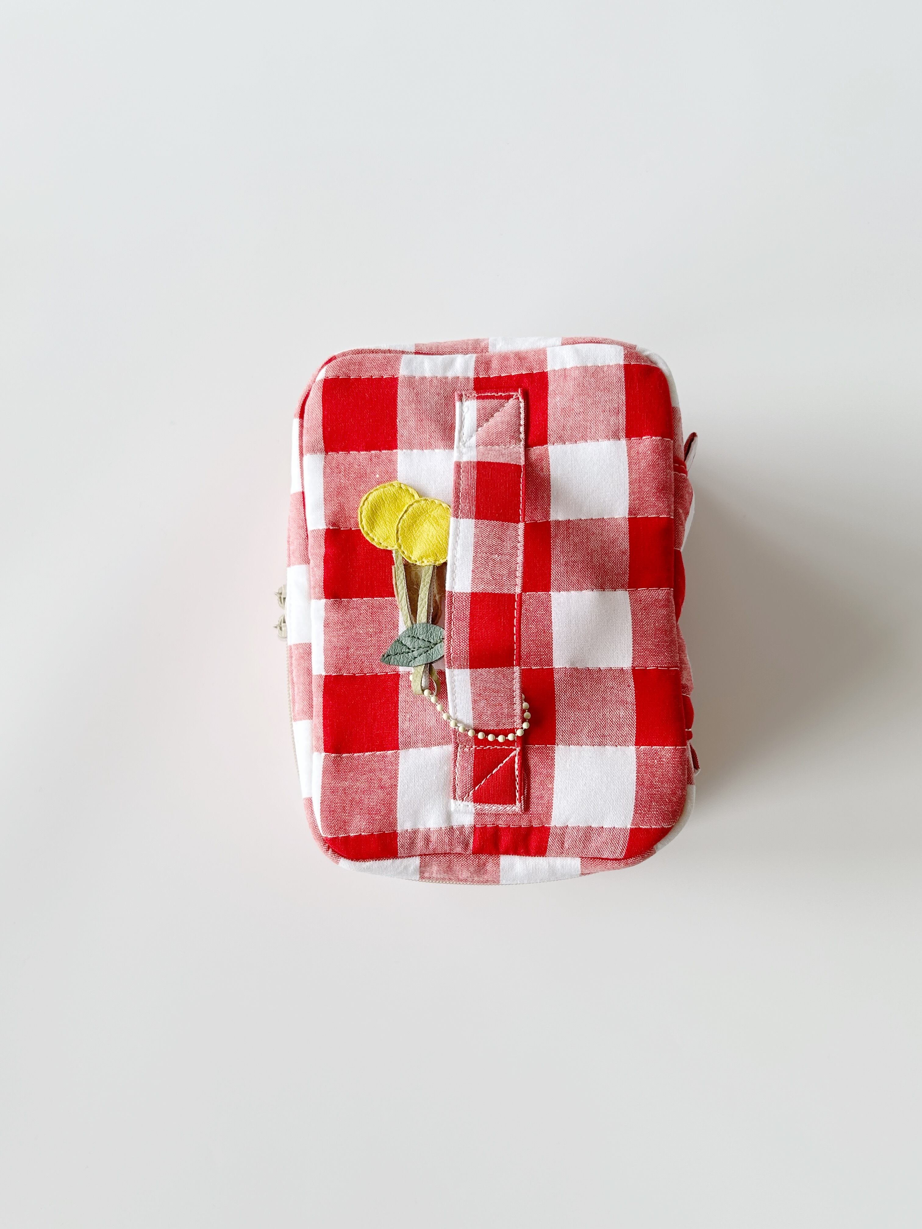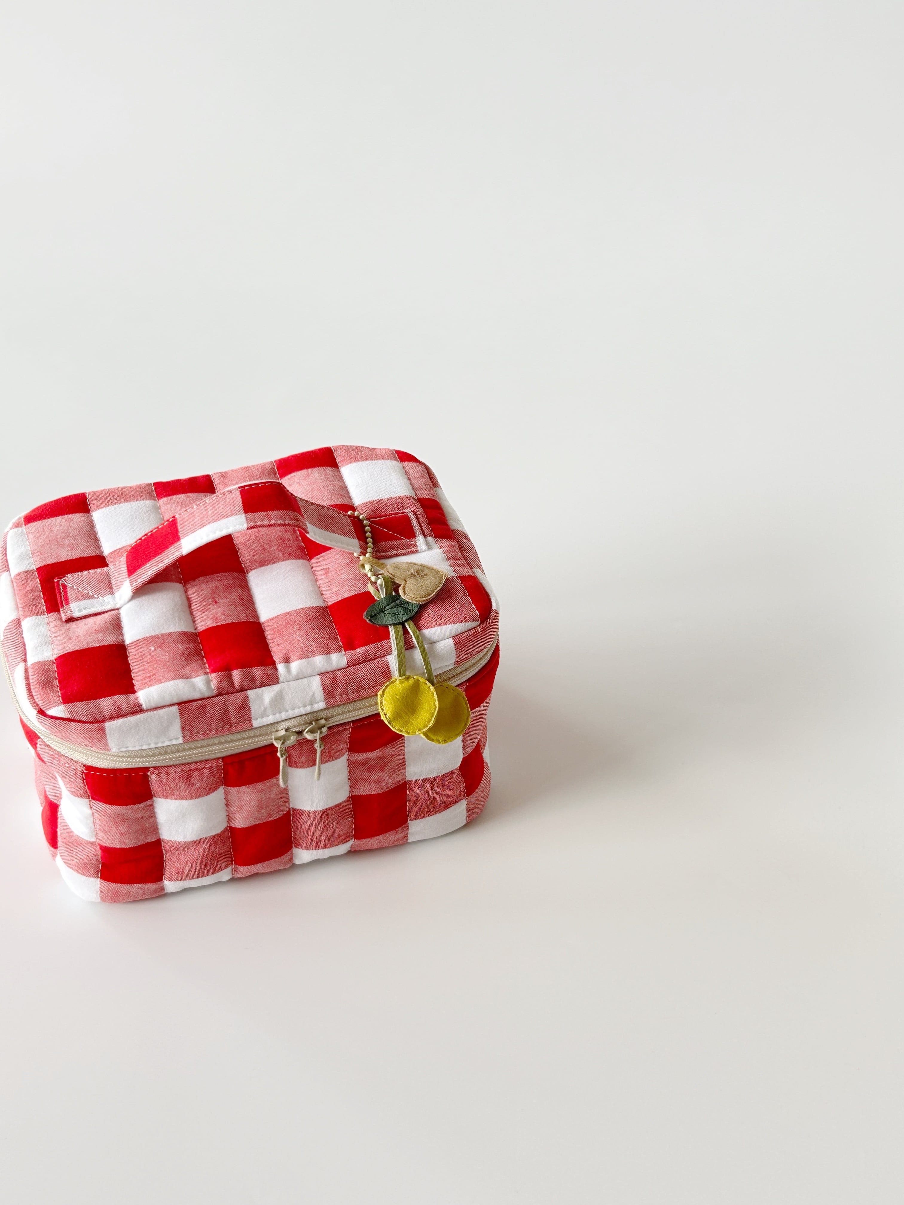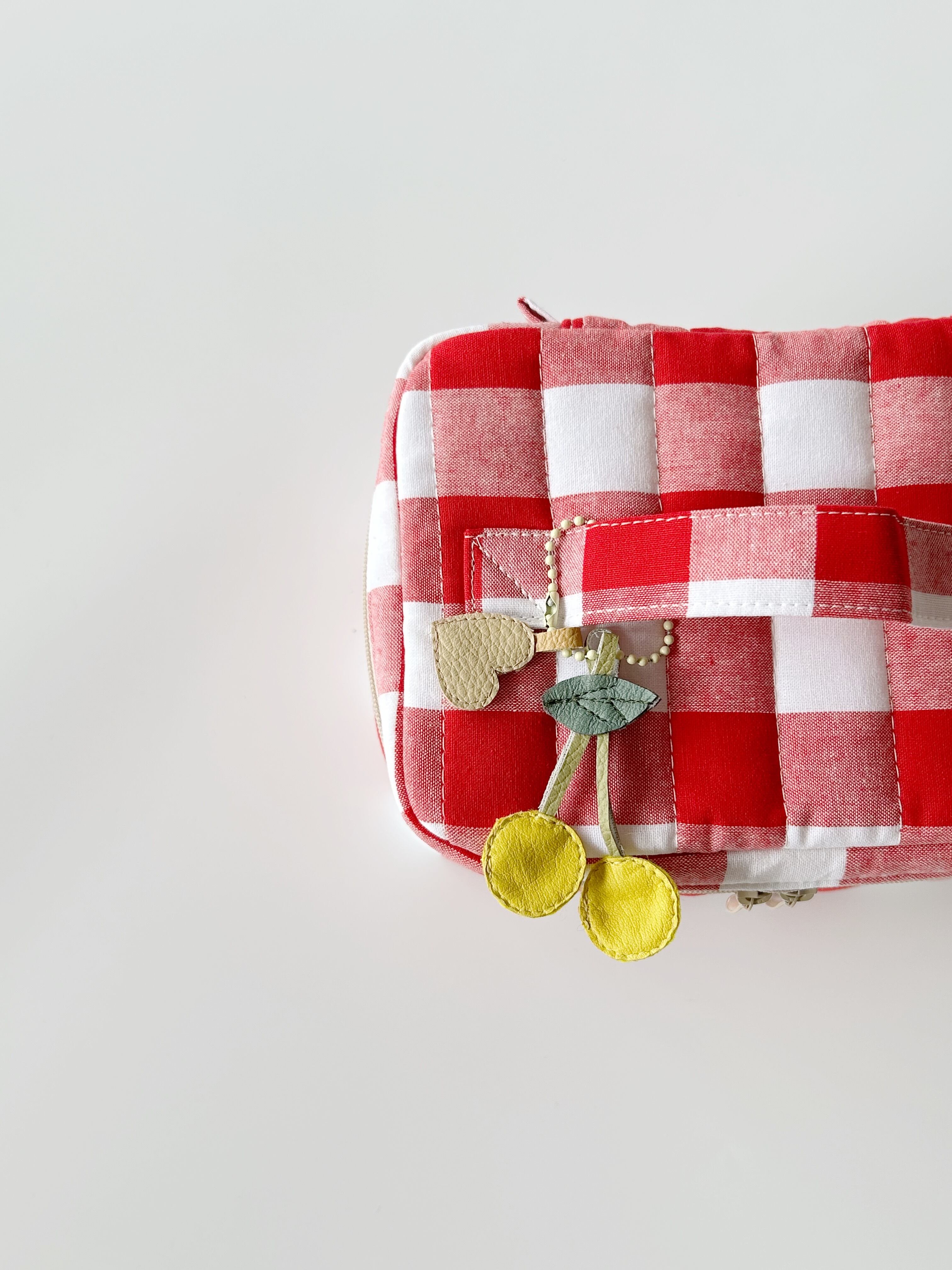 持ち手に、さくらんぼとハートのチャームが付いてます(ポールチェーンで取り外し可能)。