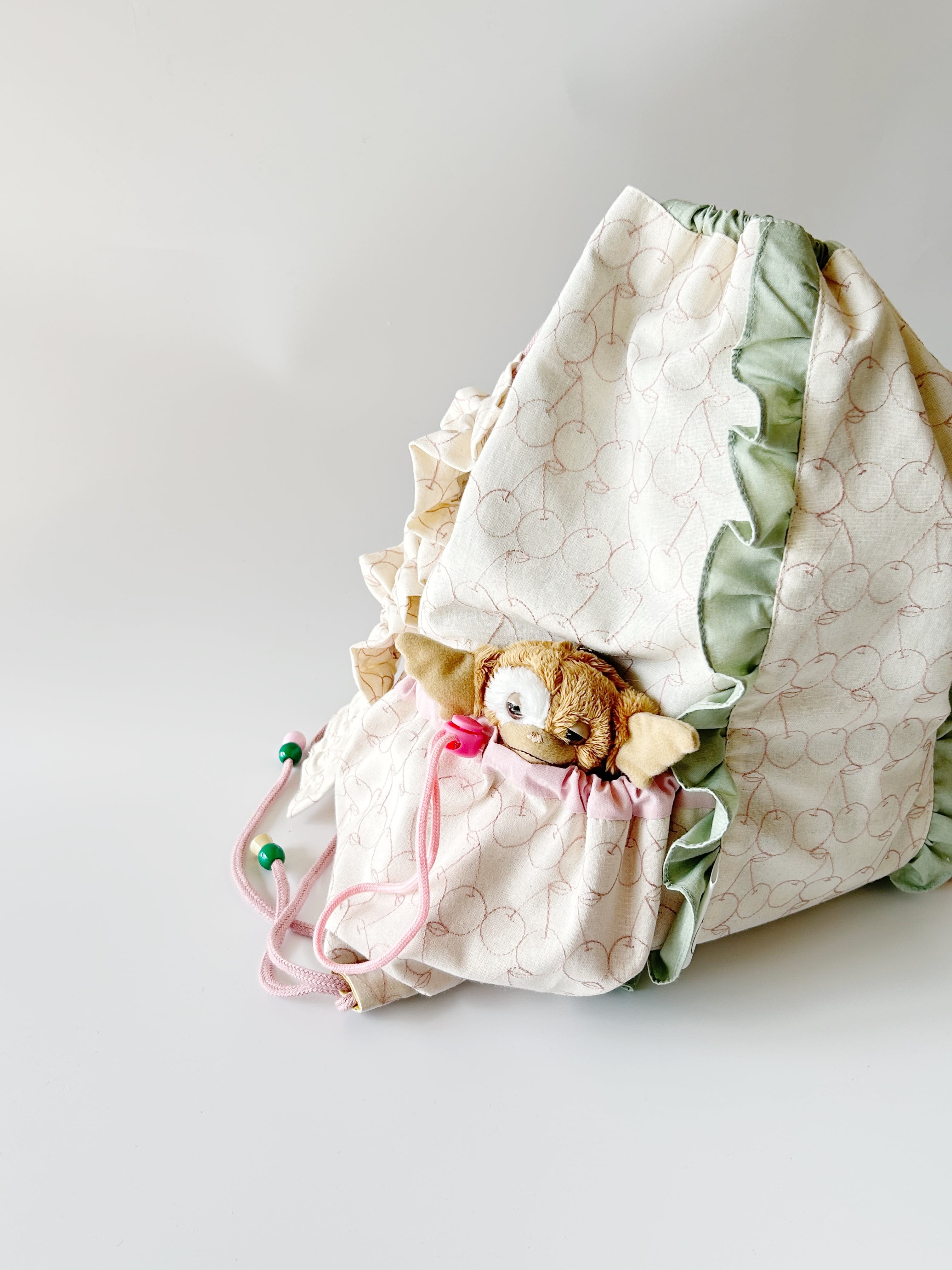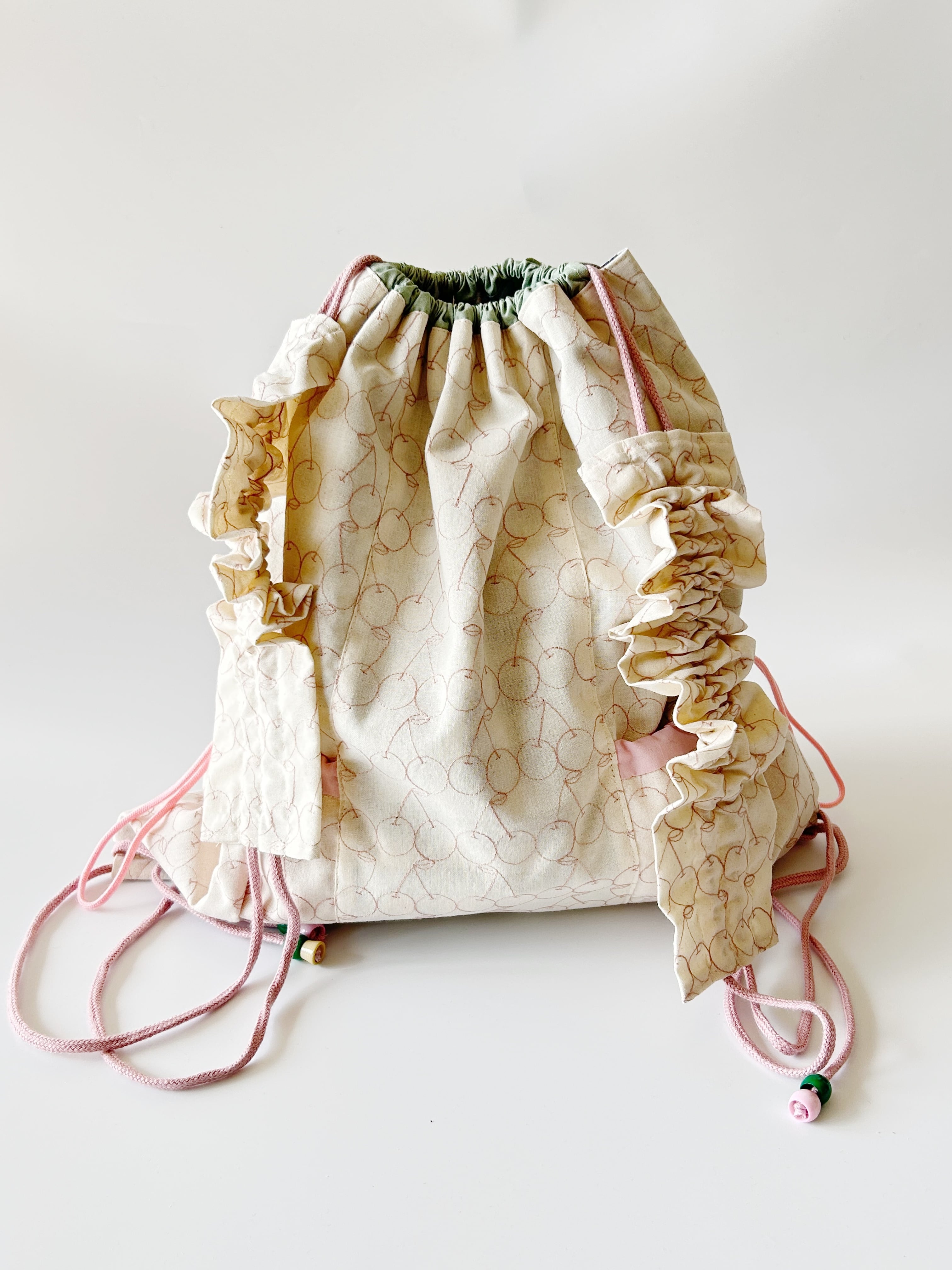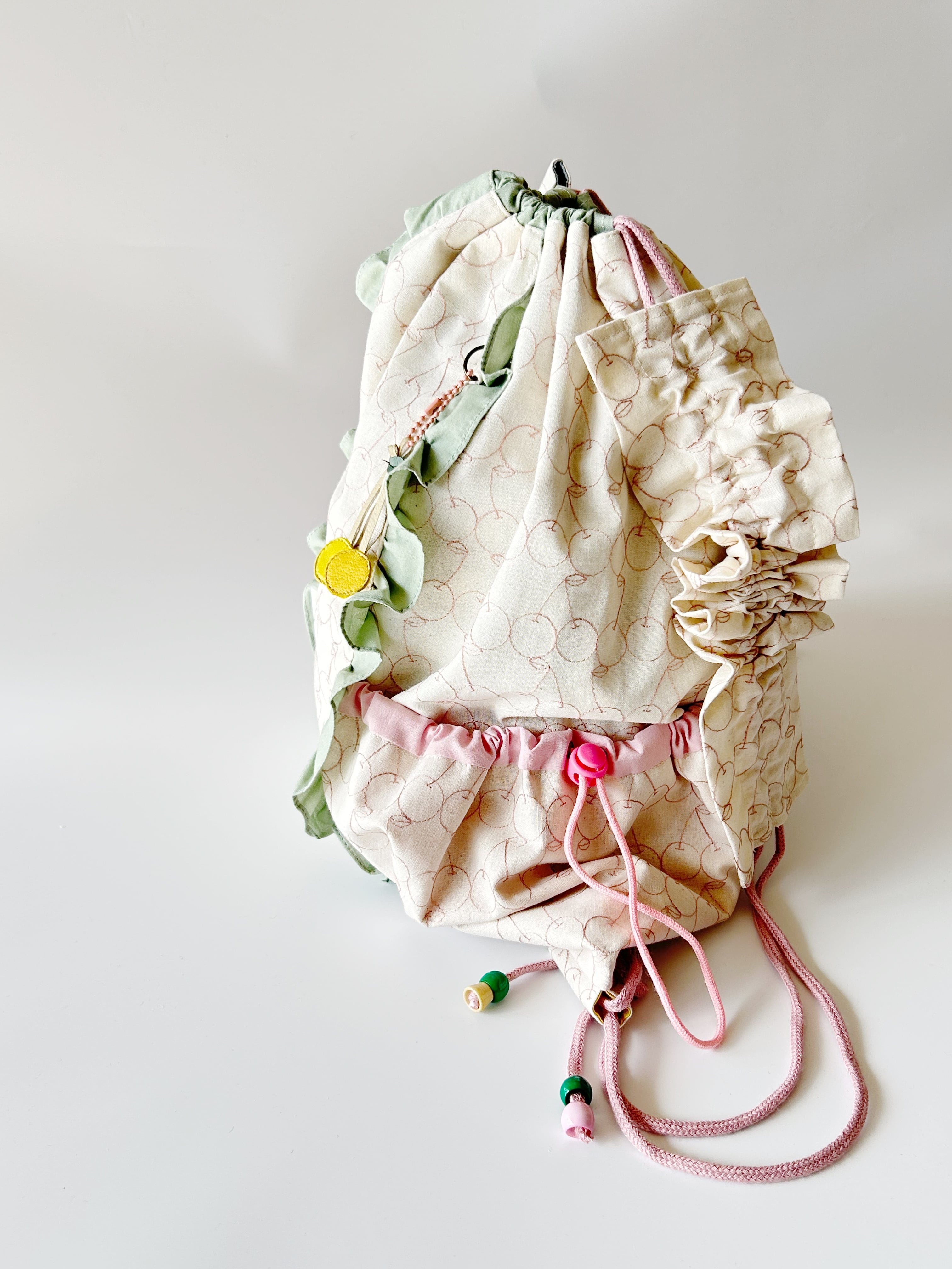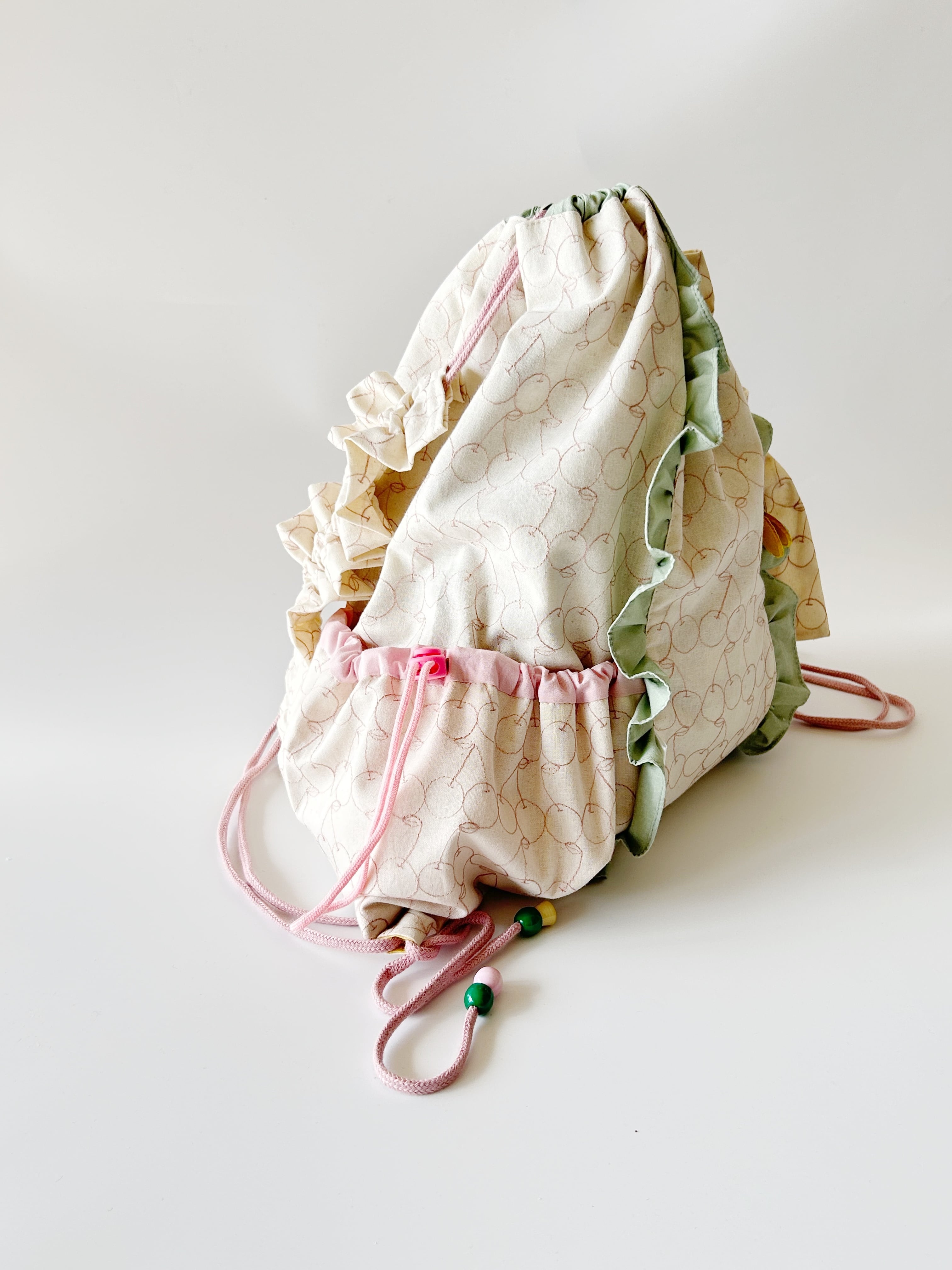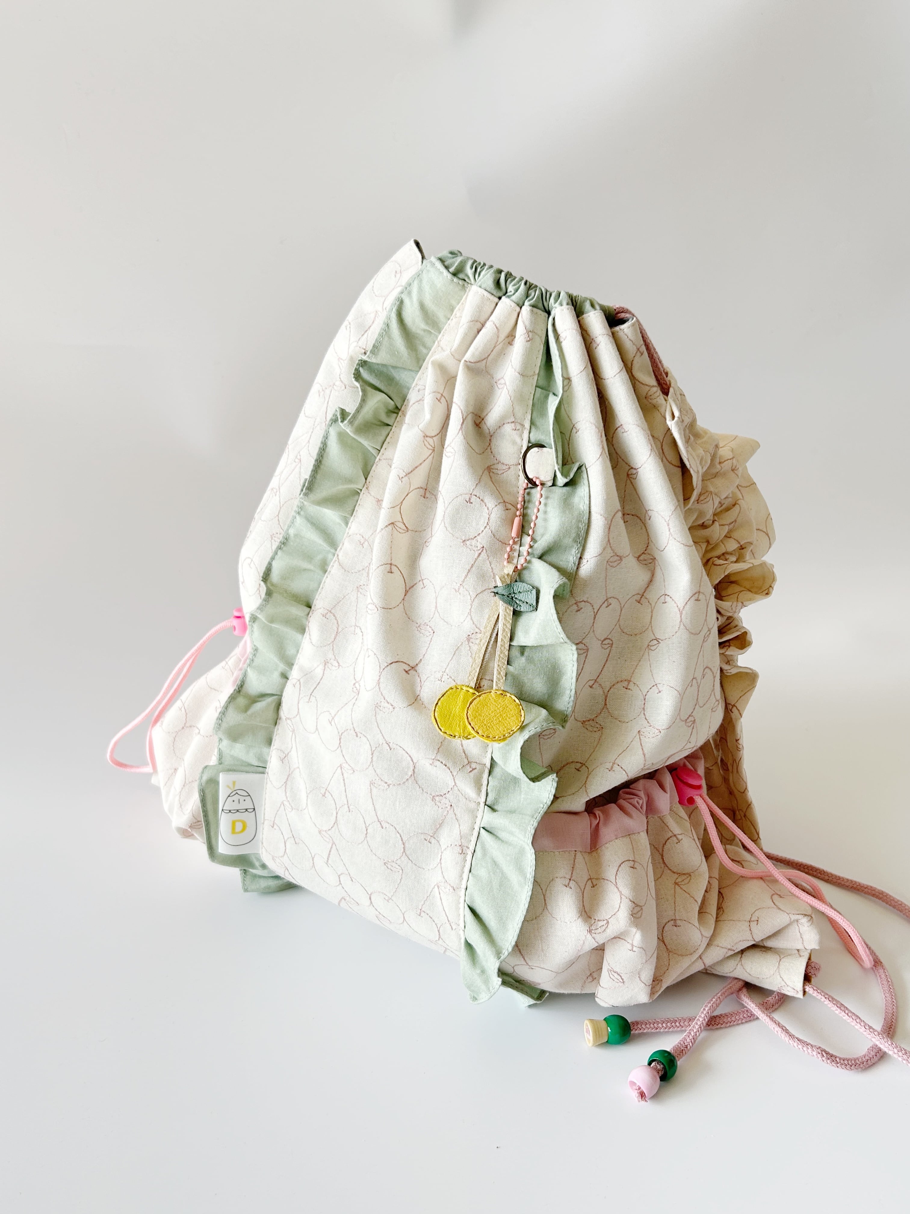 淡い色合いがラブリーなナップサックです。
