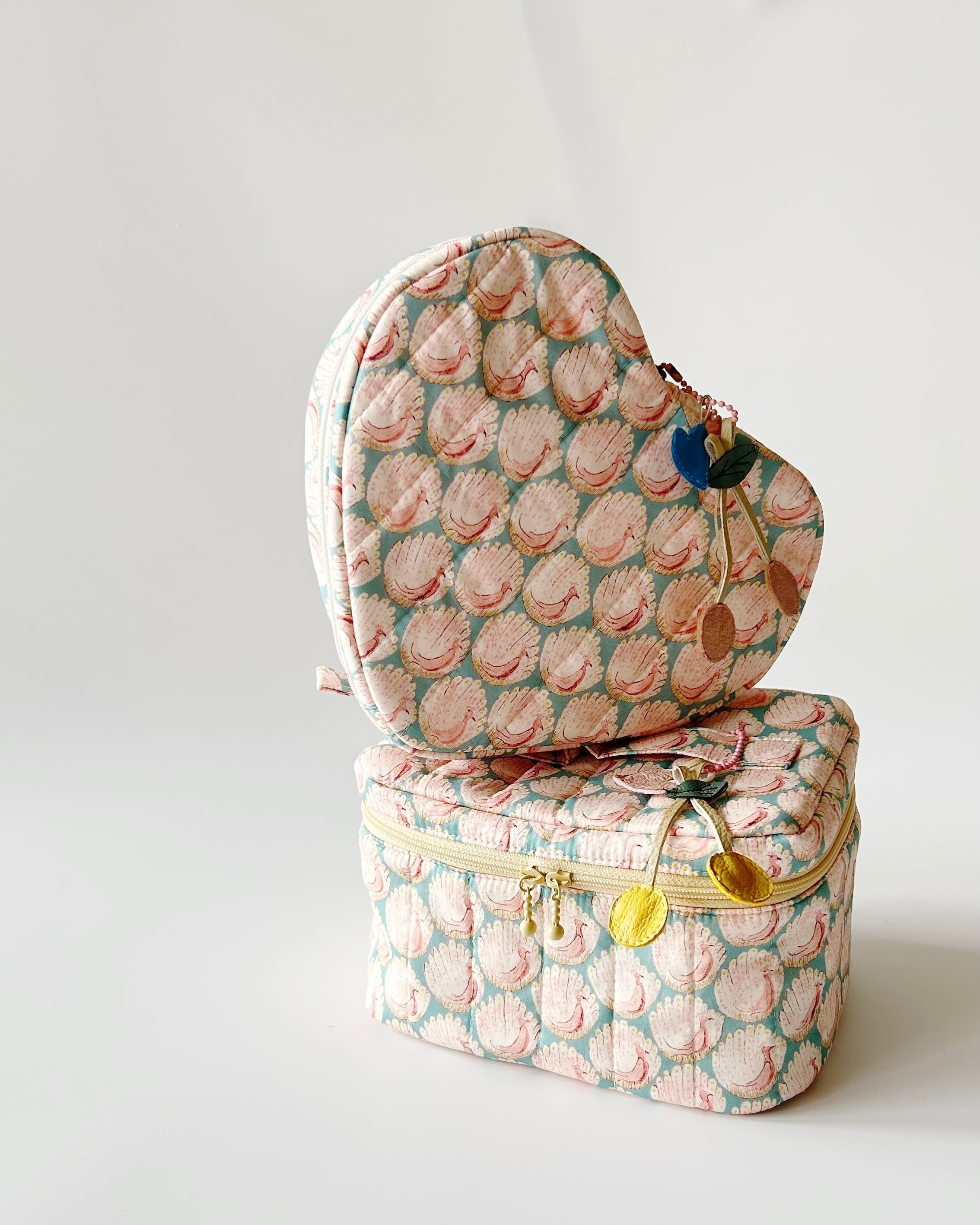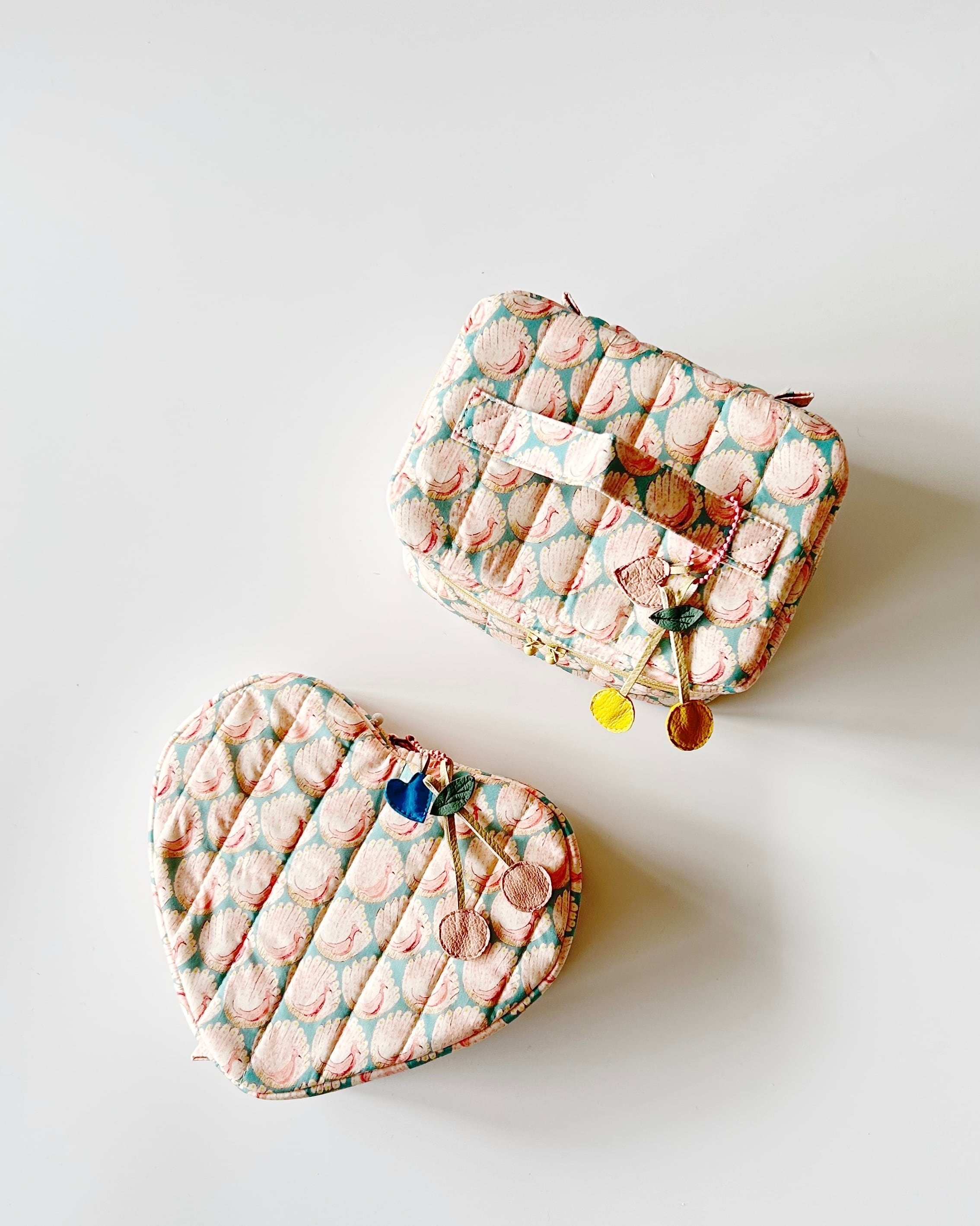 お揃いの生地でハート型ポーチをご用意してます。