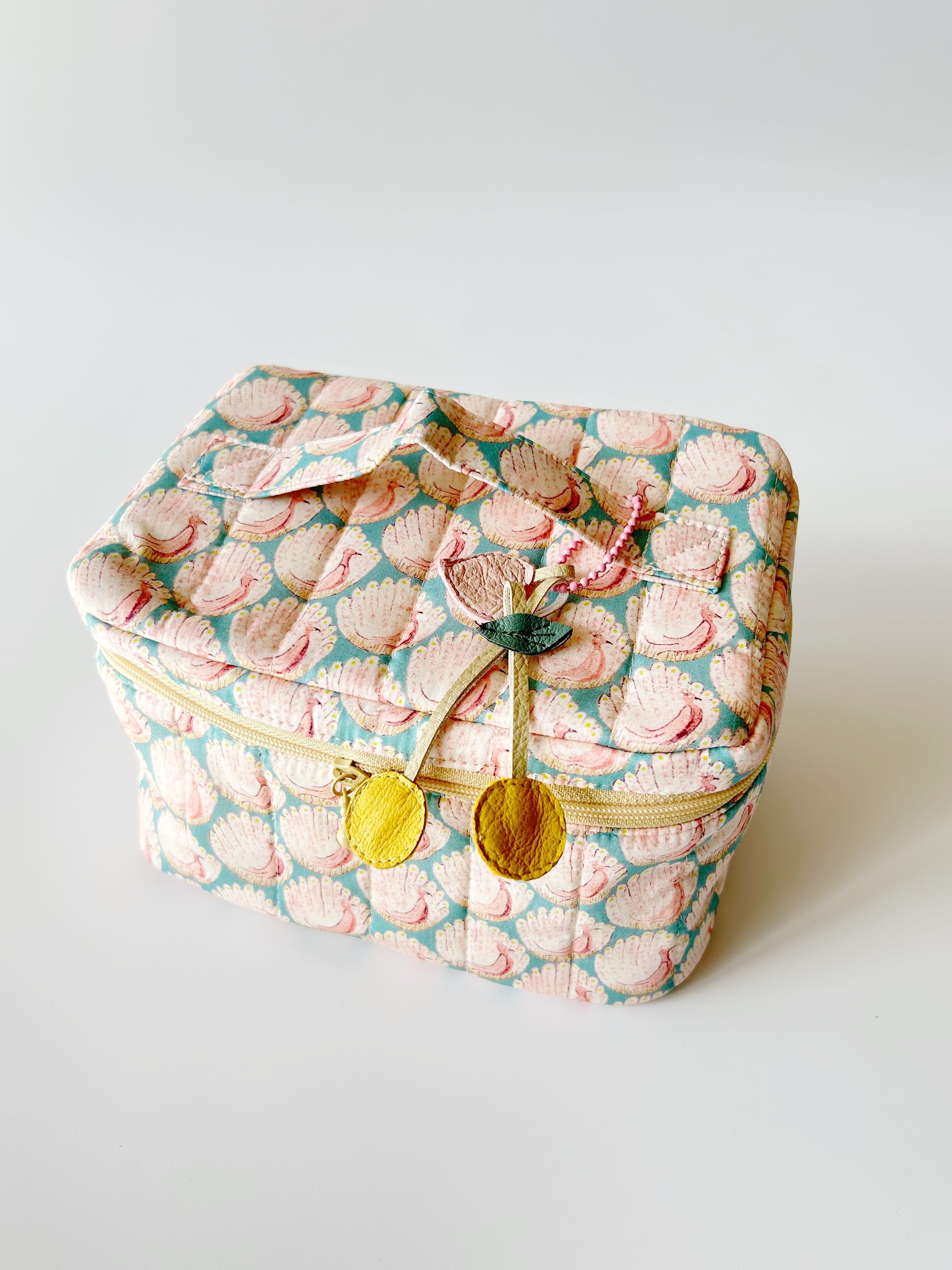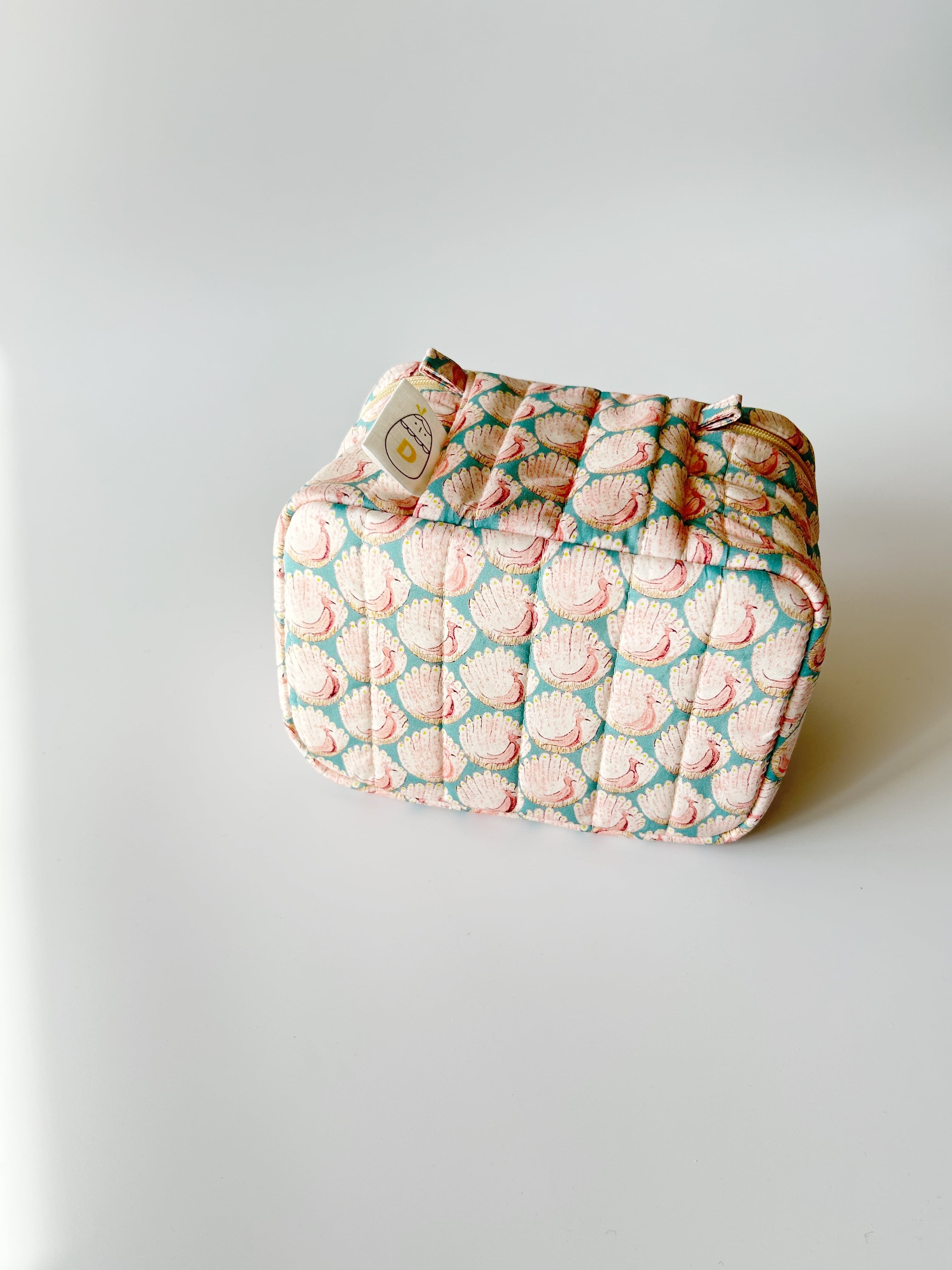 やさしいピーコック柄が目を引くバニティポーチ