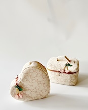 お揃いの生地でハート型ポーチとナップサックをご用意してます。