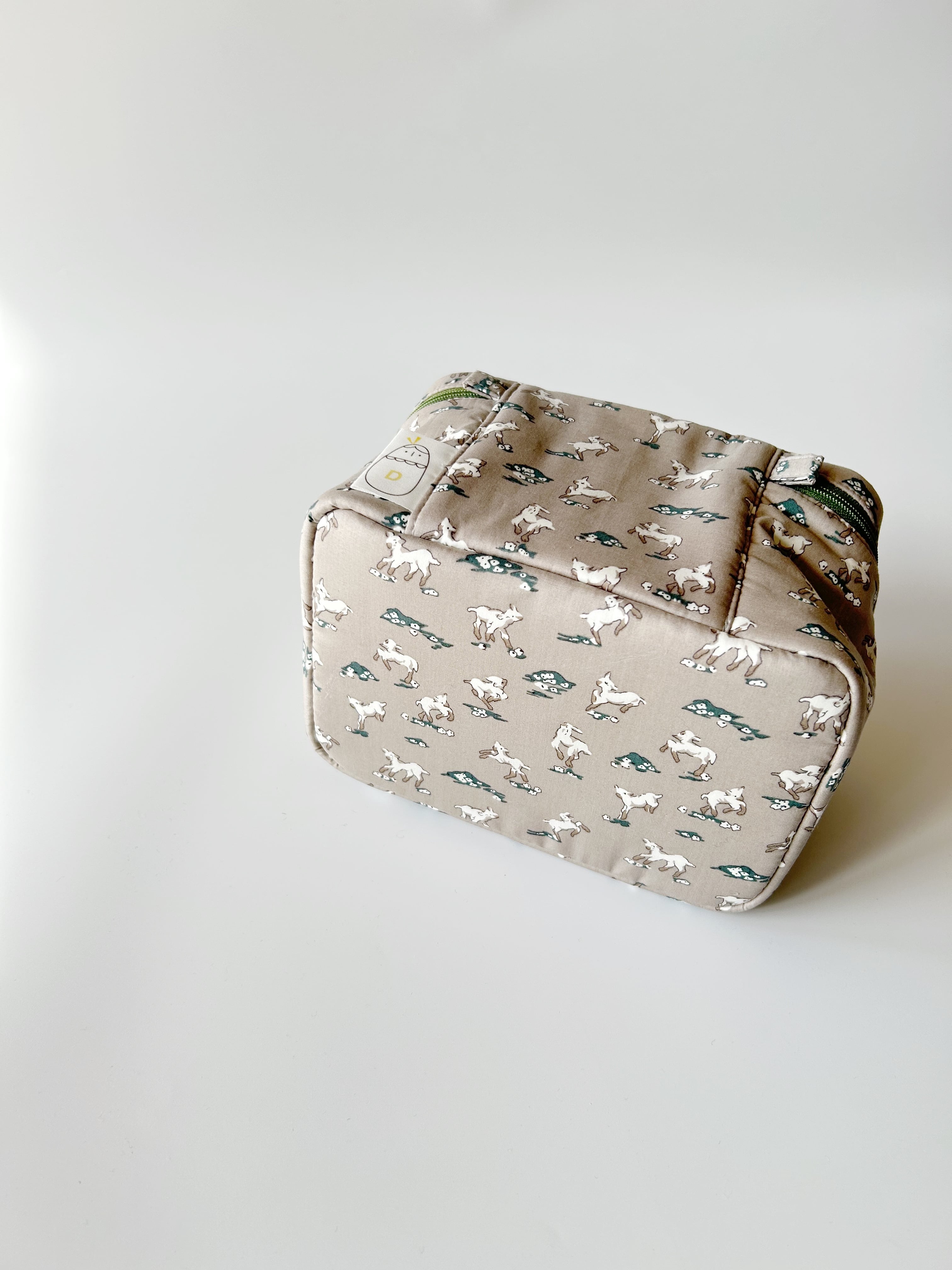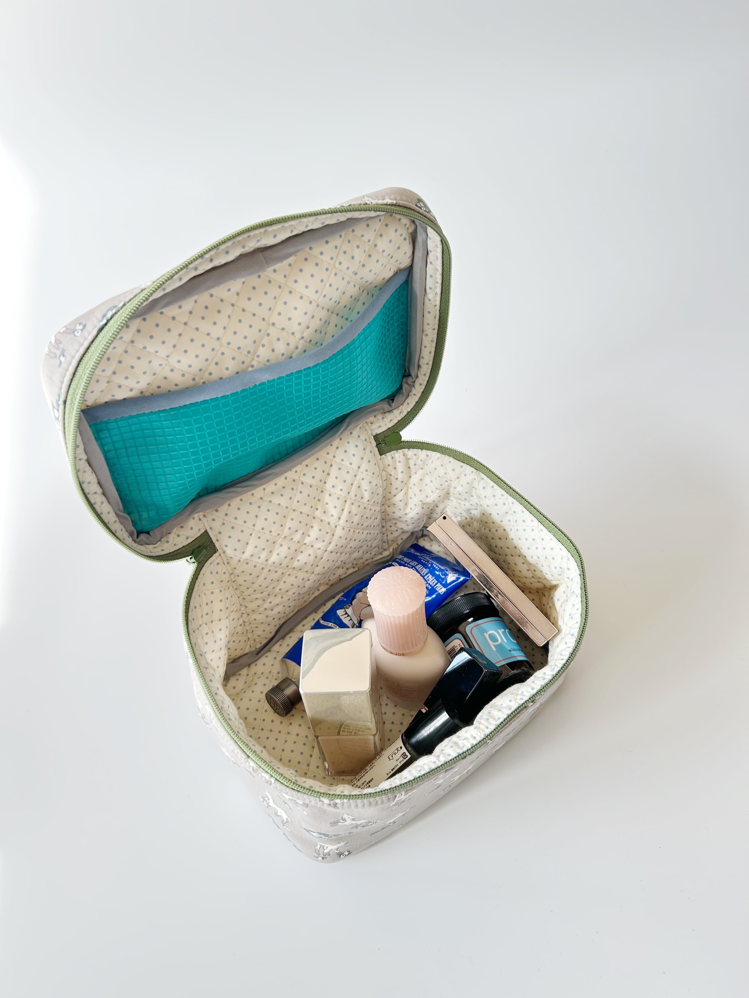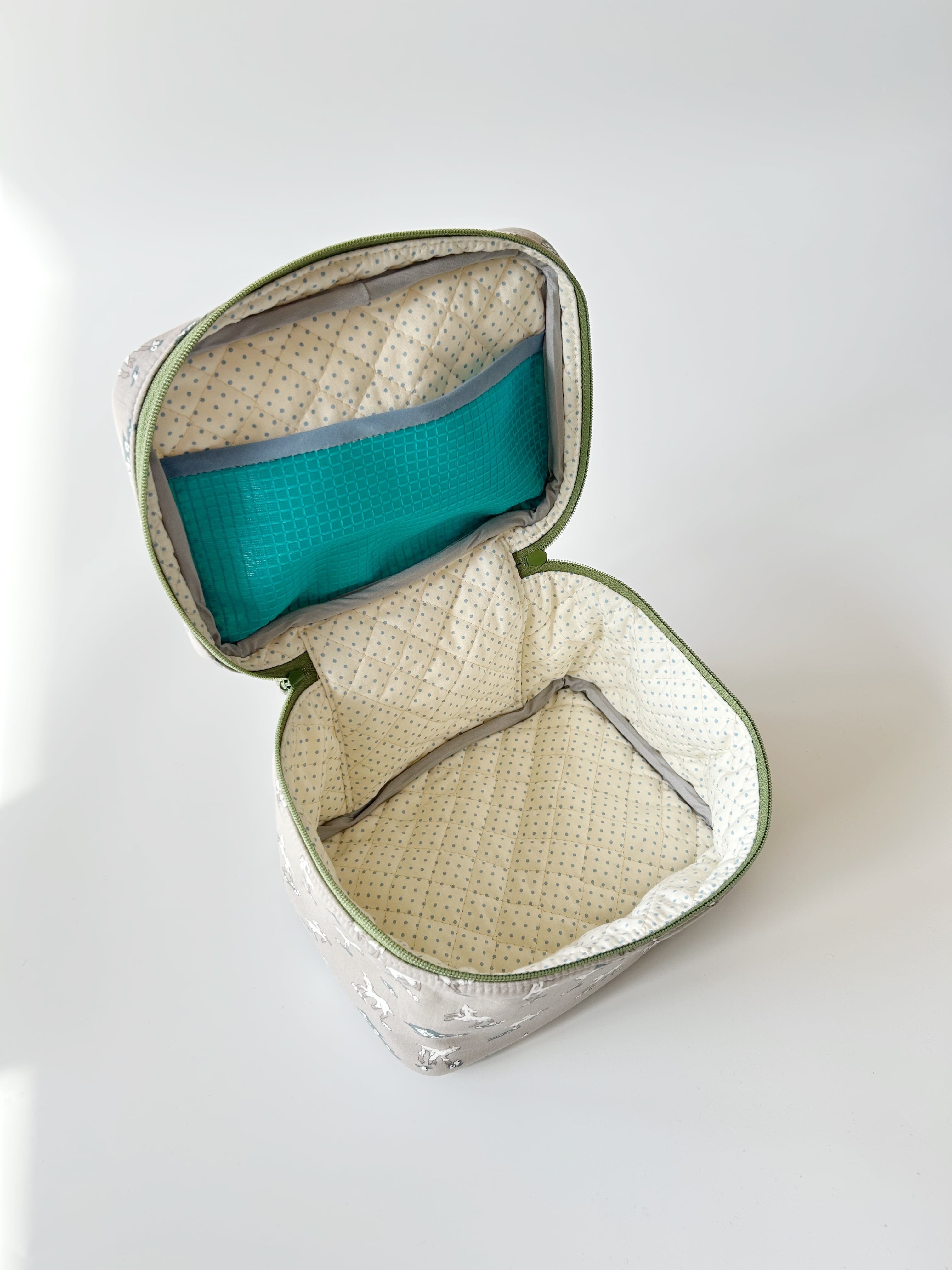 内側は、生成色に水色の水玉柄のキルティング生地です。
