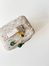 持ち手に、さくらんぼとハートのチャームが付いてます(ポールチェーンで取り外し可能)。