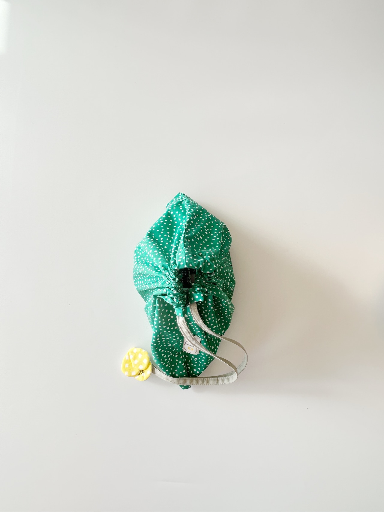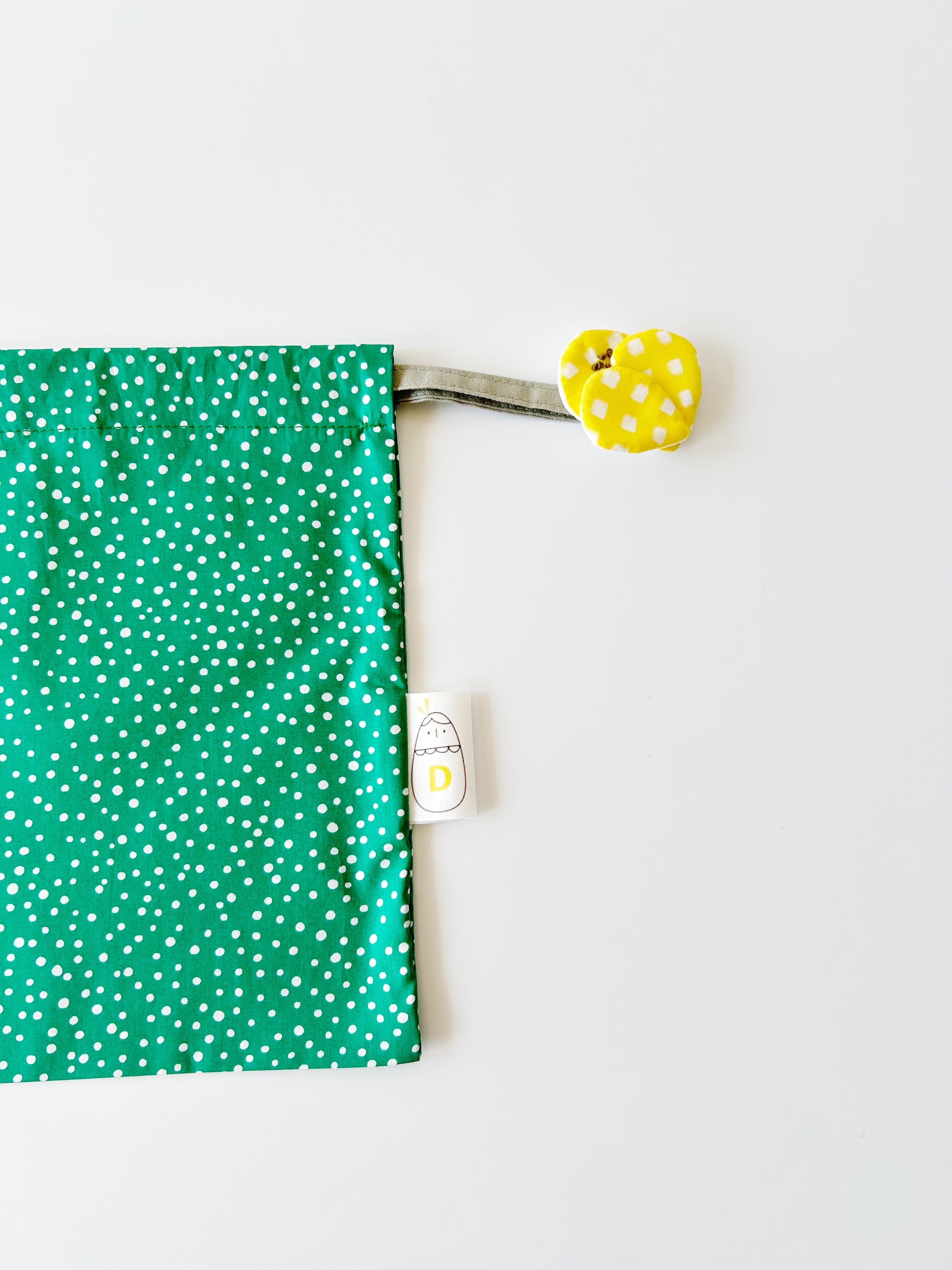 そのまま贈り物になる布の大きめのギフト巾着です。