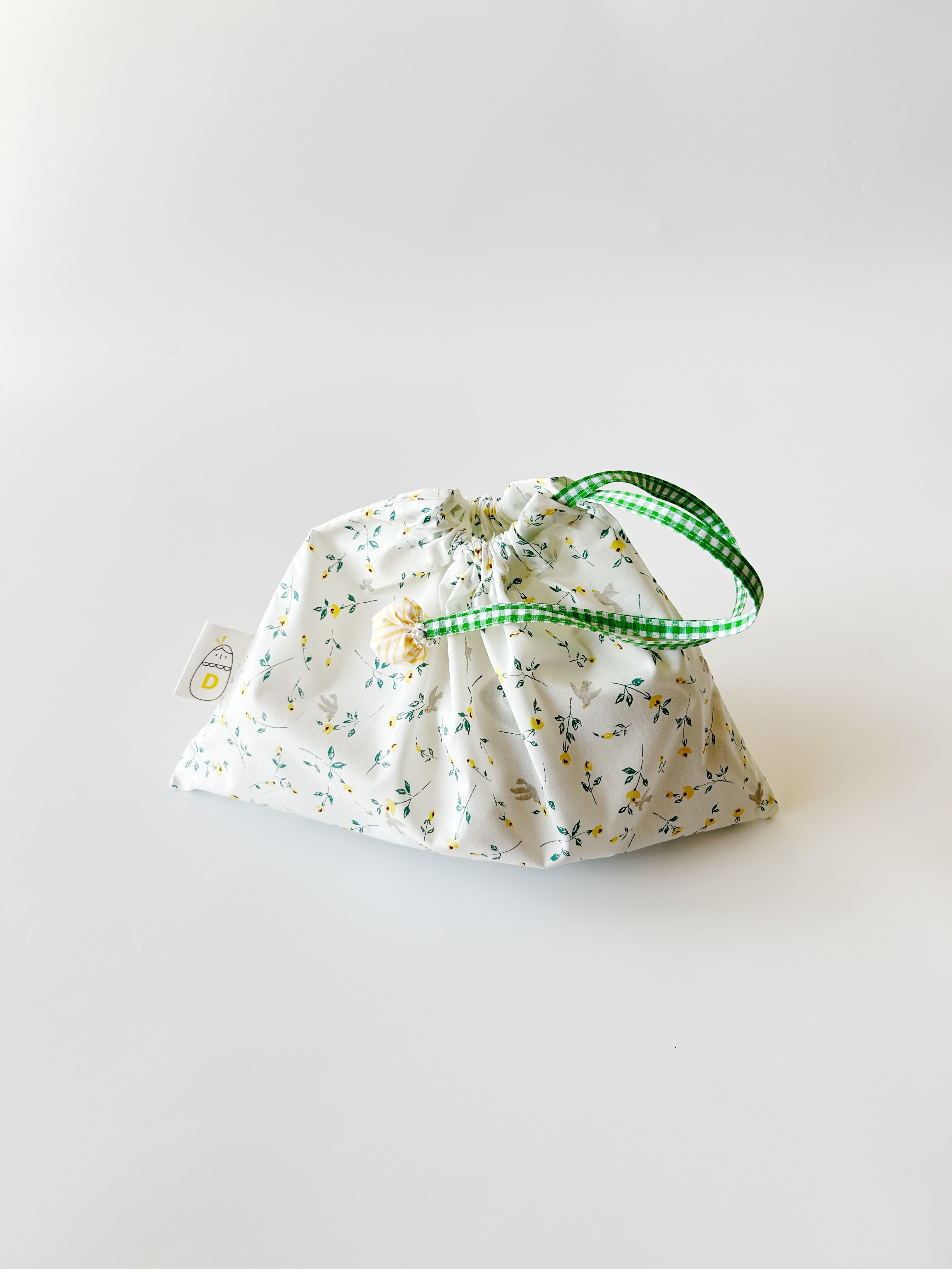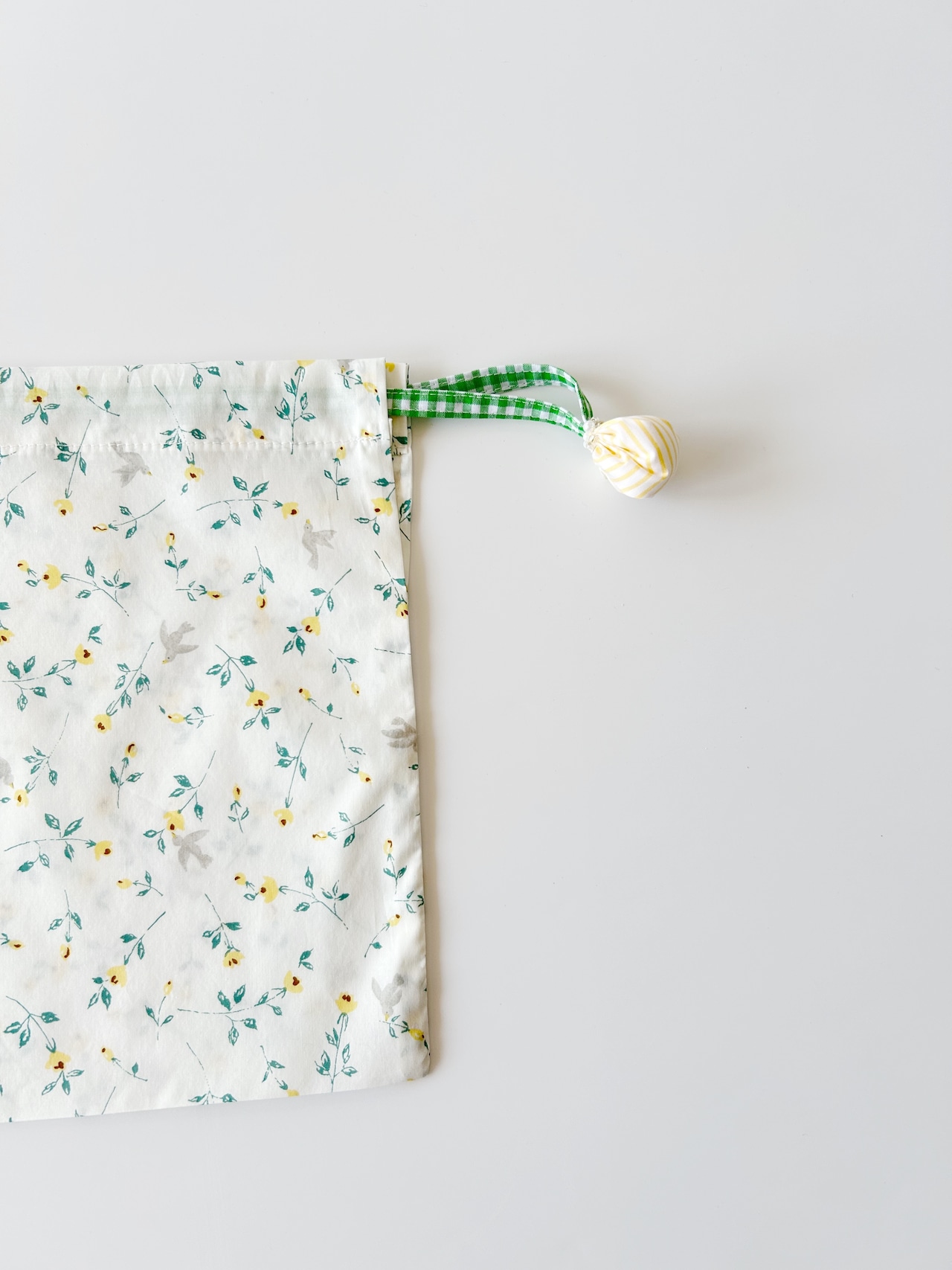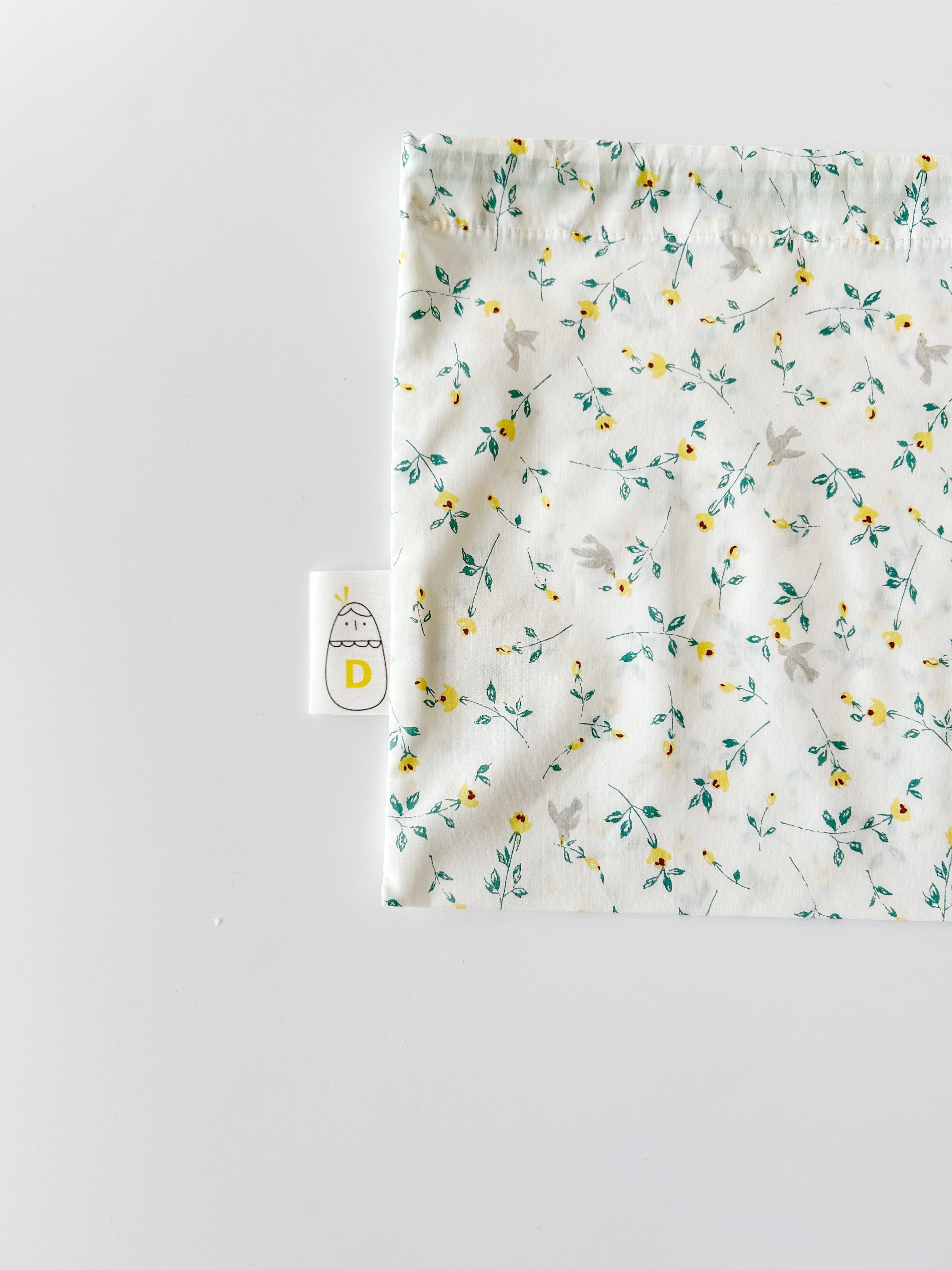 1枚仕立てで作った透ける軽い巾着袋です。