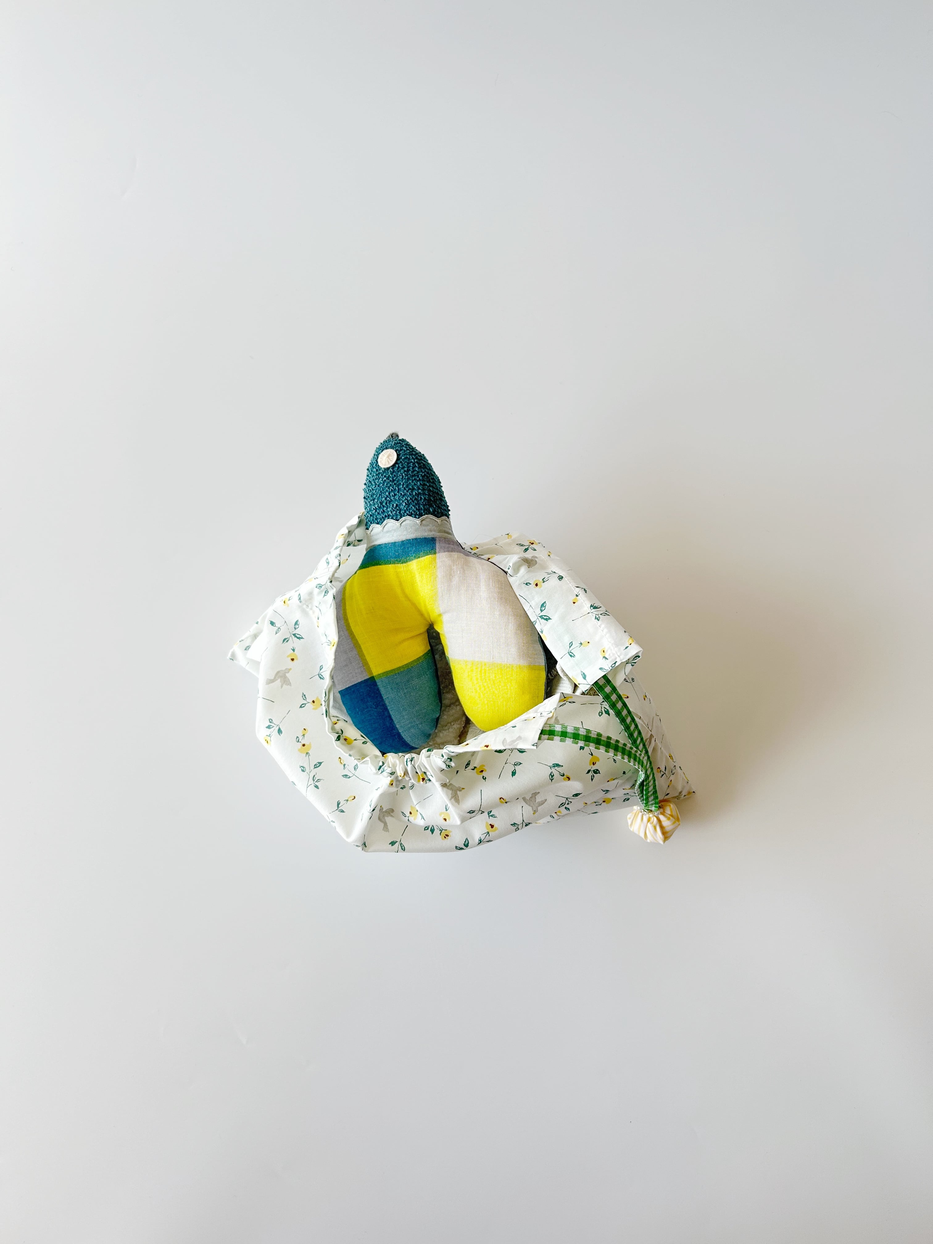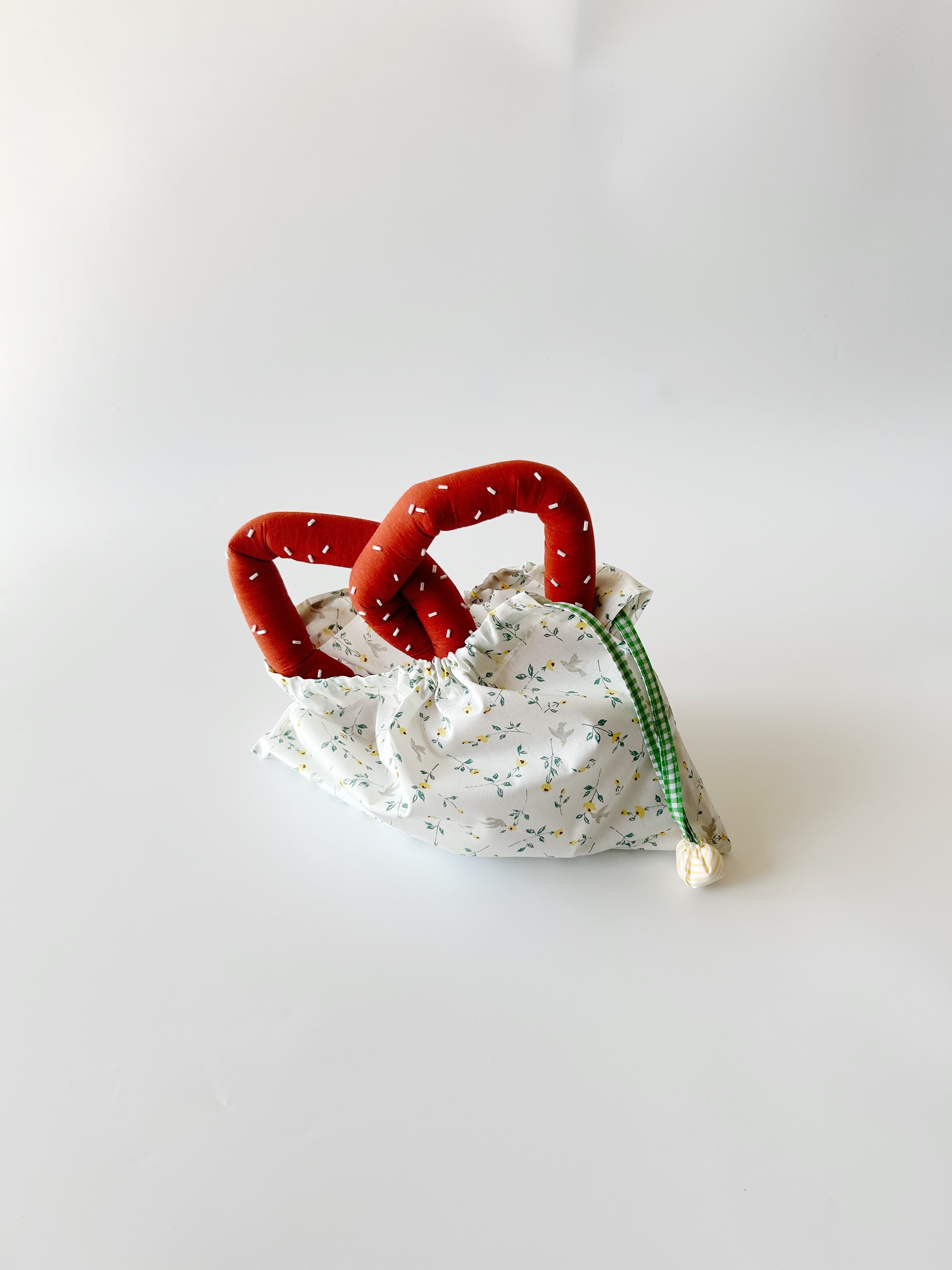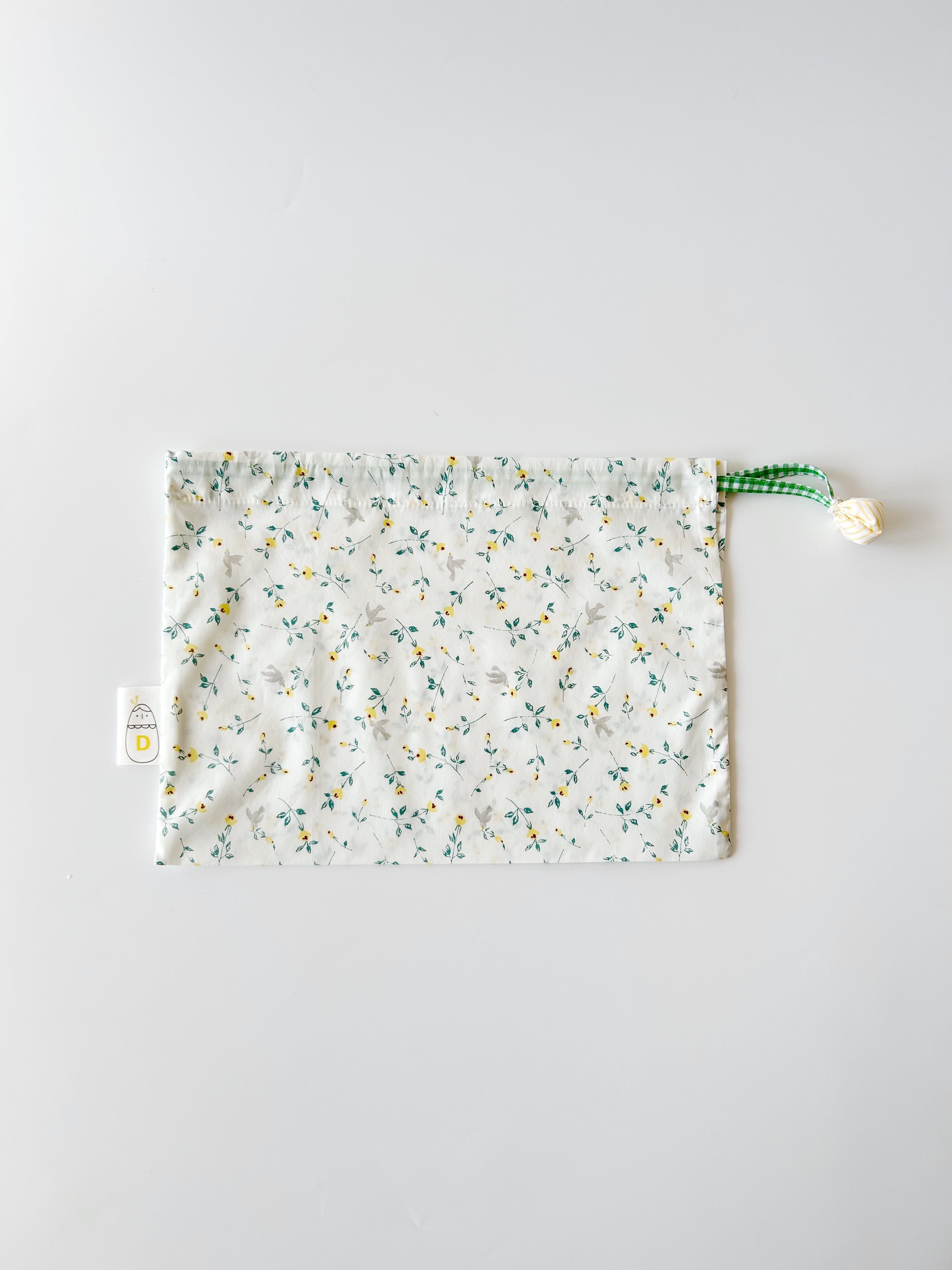1枚仕立てで作った透ける軽い巾着袋です。