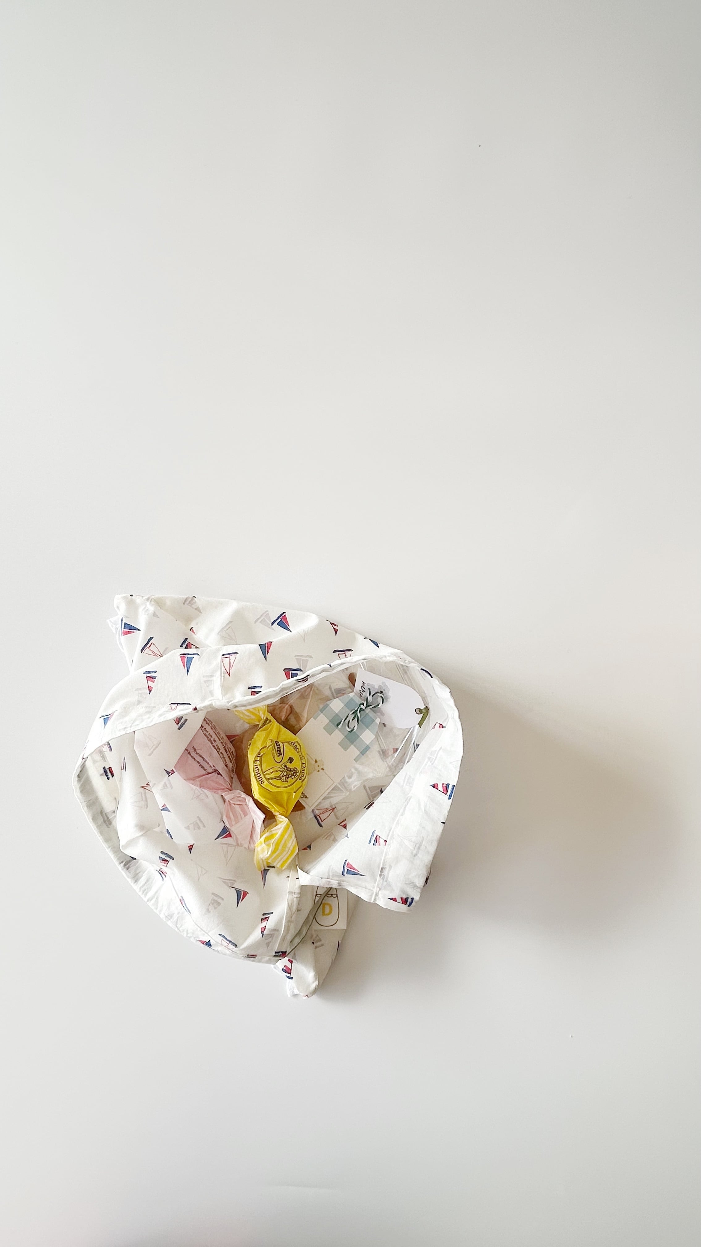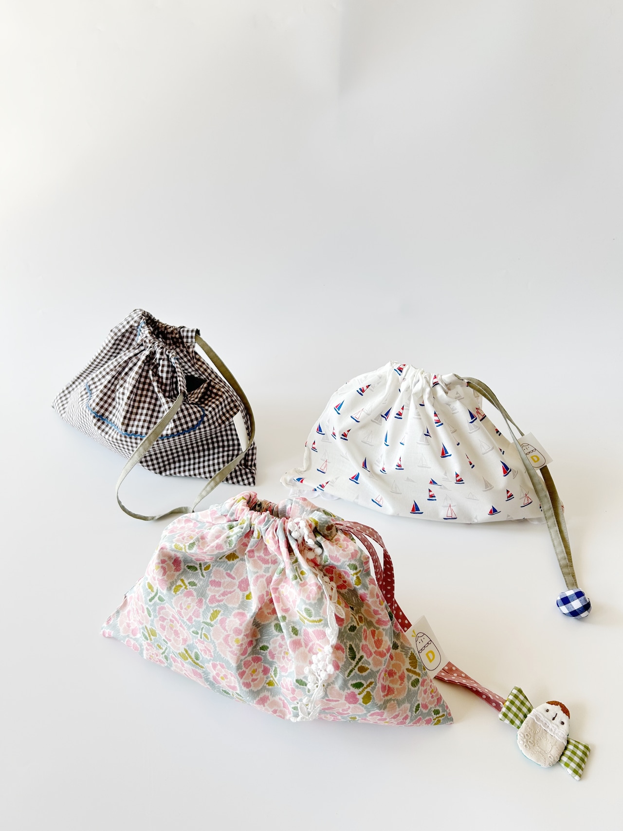 そのまま贈り物になる布の大きめのギフト巾着です。