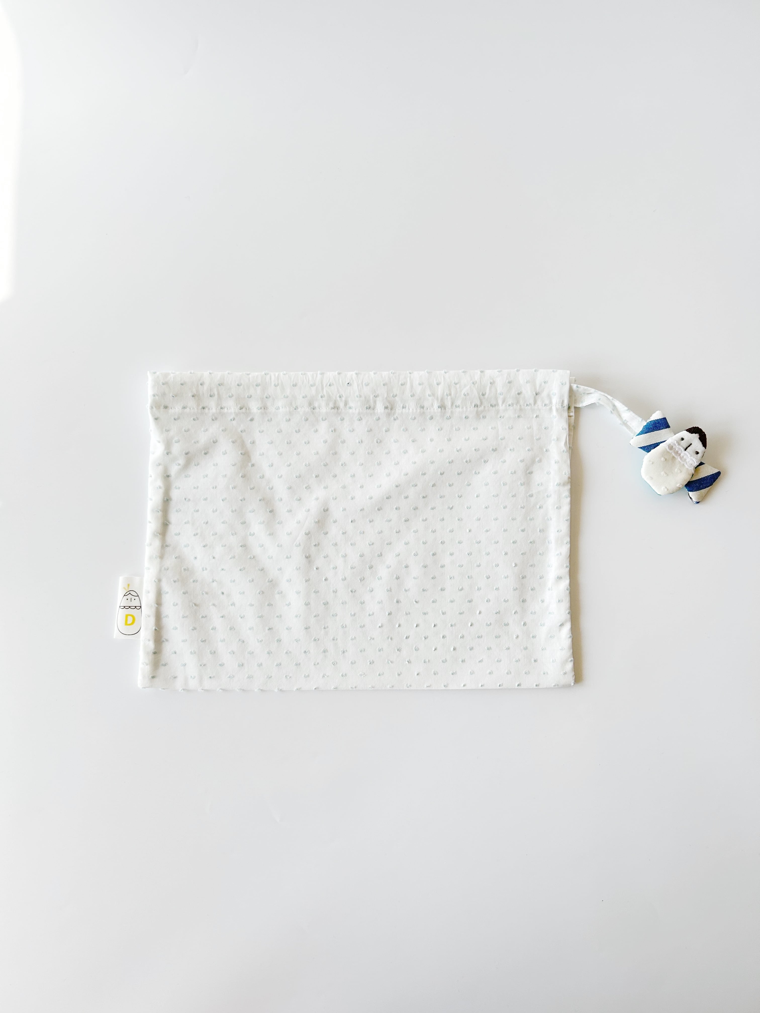 1枚仕立てで作った透ける軽い巾着袋です。