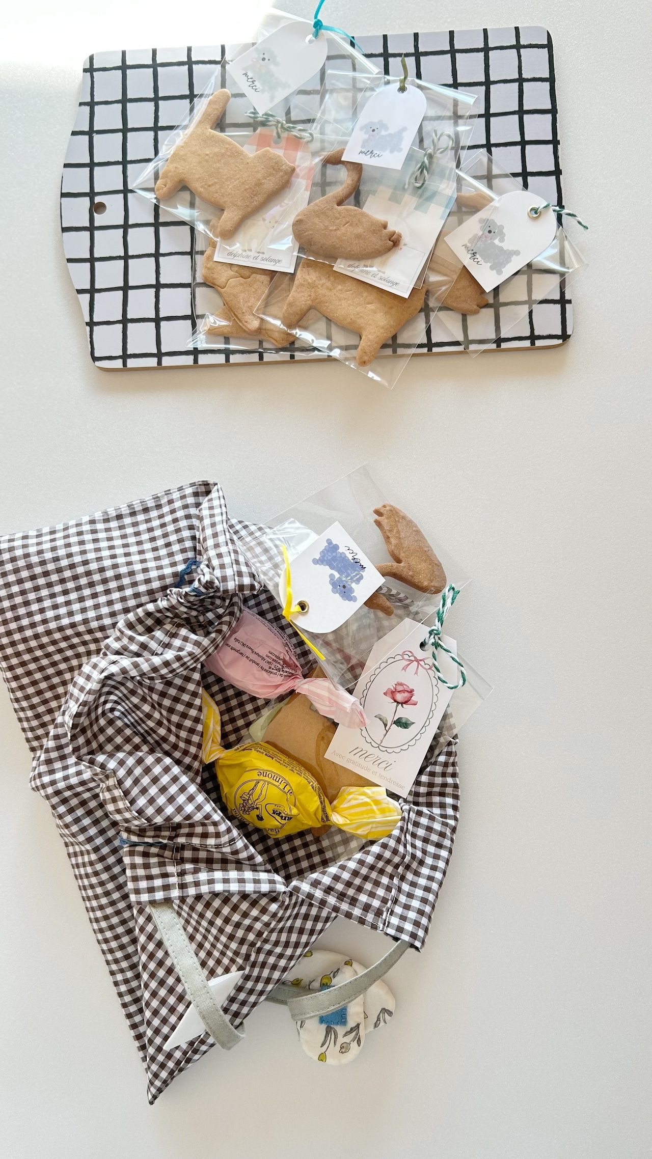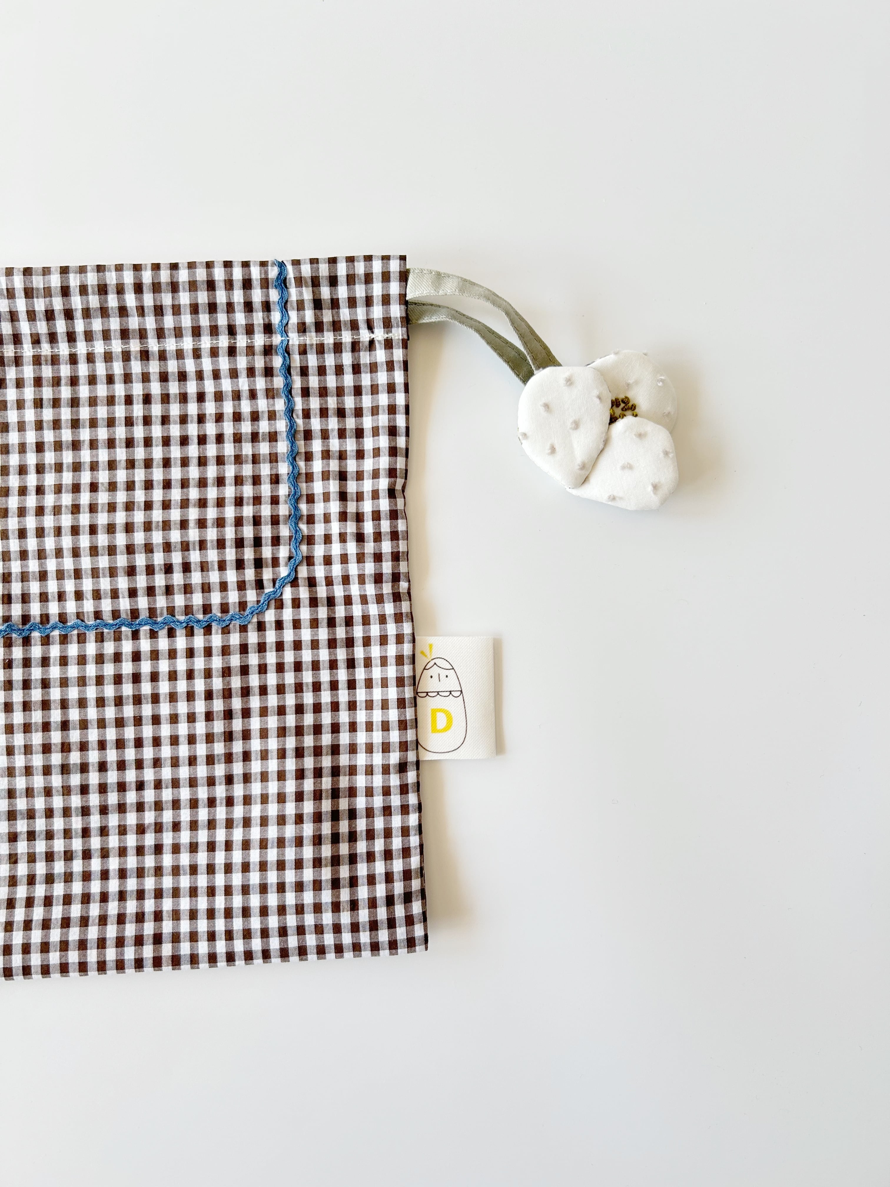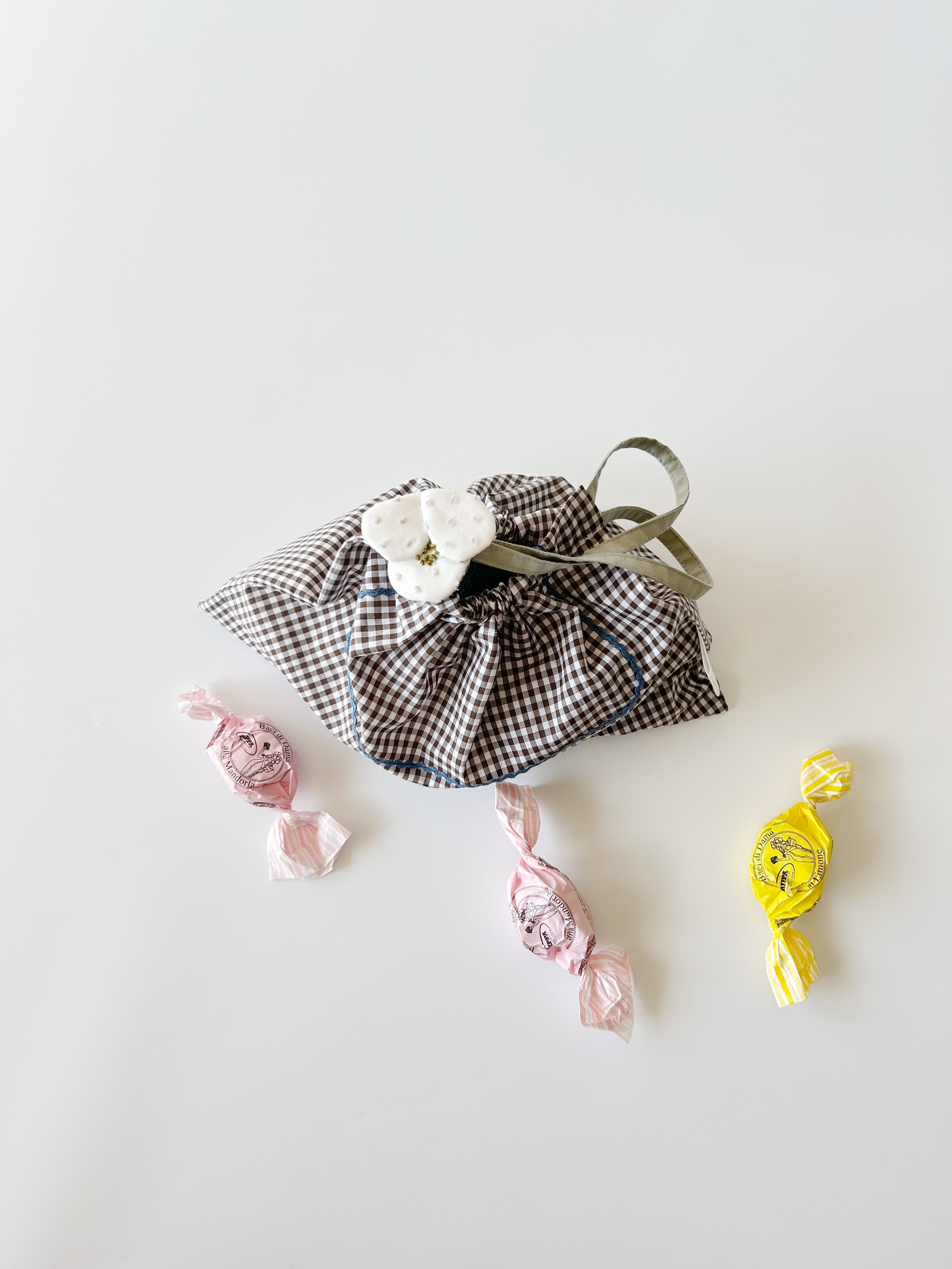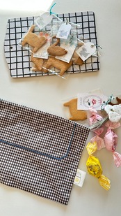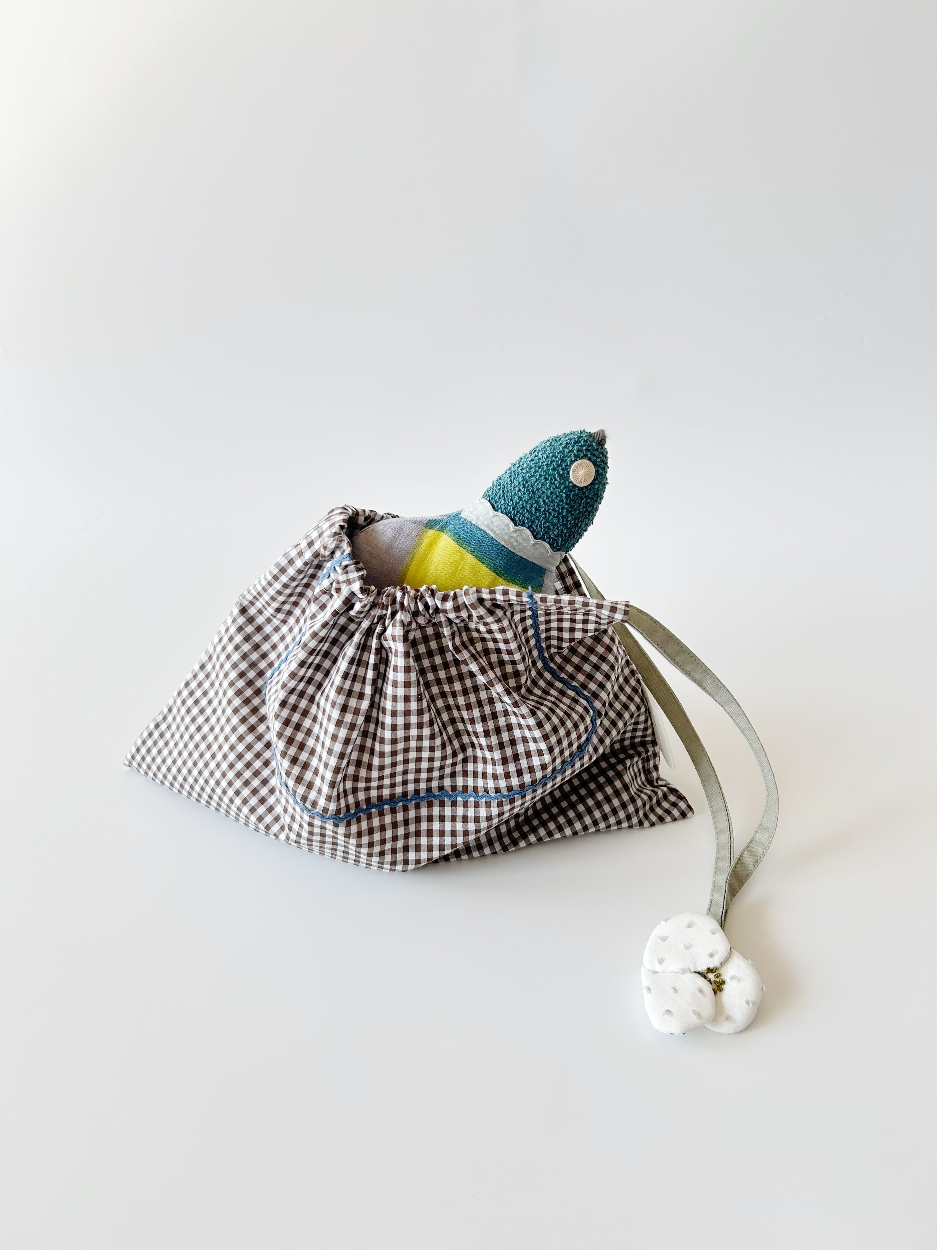 そのまま贈り物になる布の大きめのギフト巾着です。