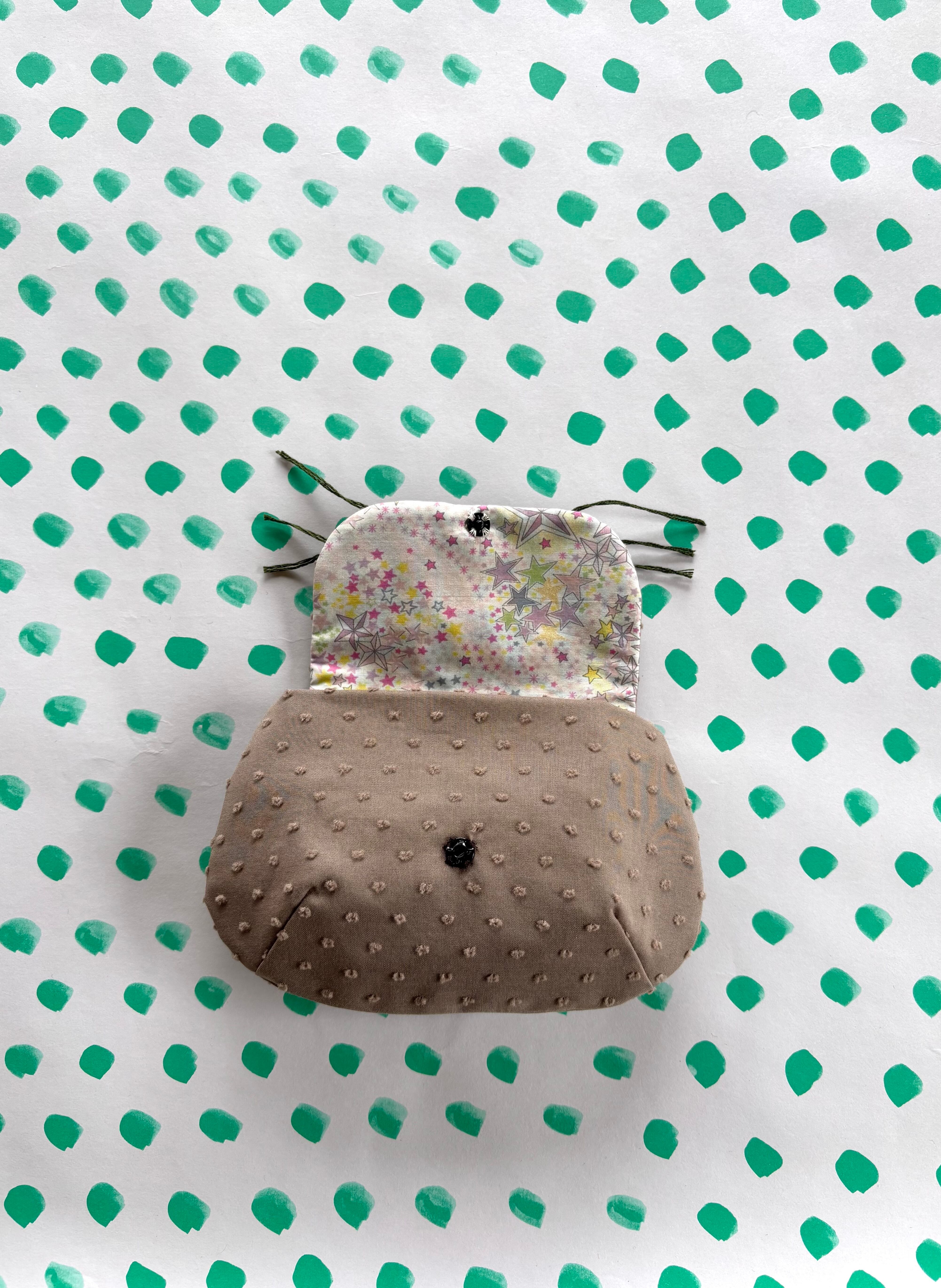 内側は、星柄のリバティ布地を使用しています。