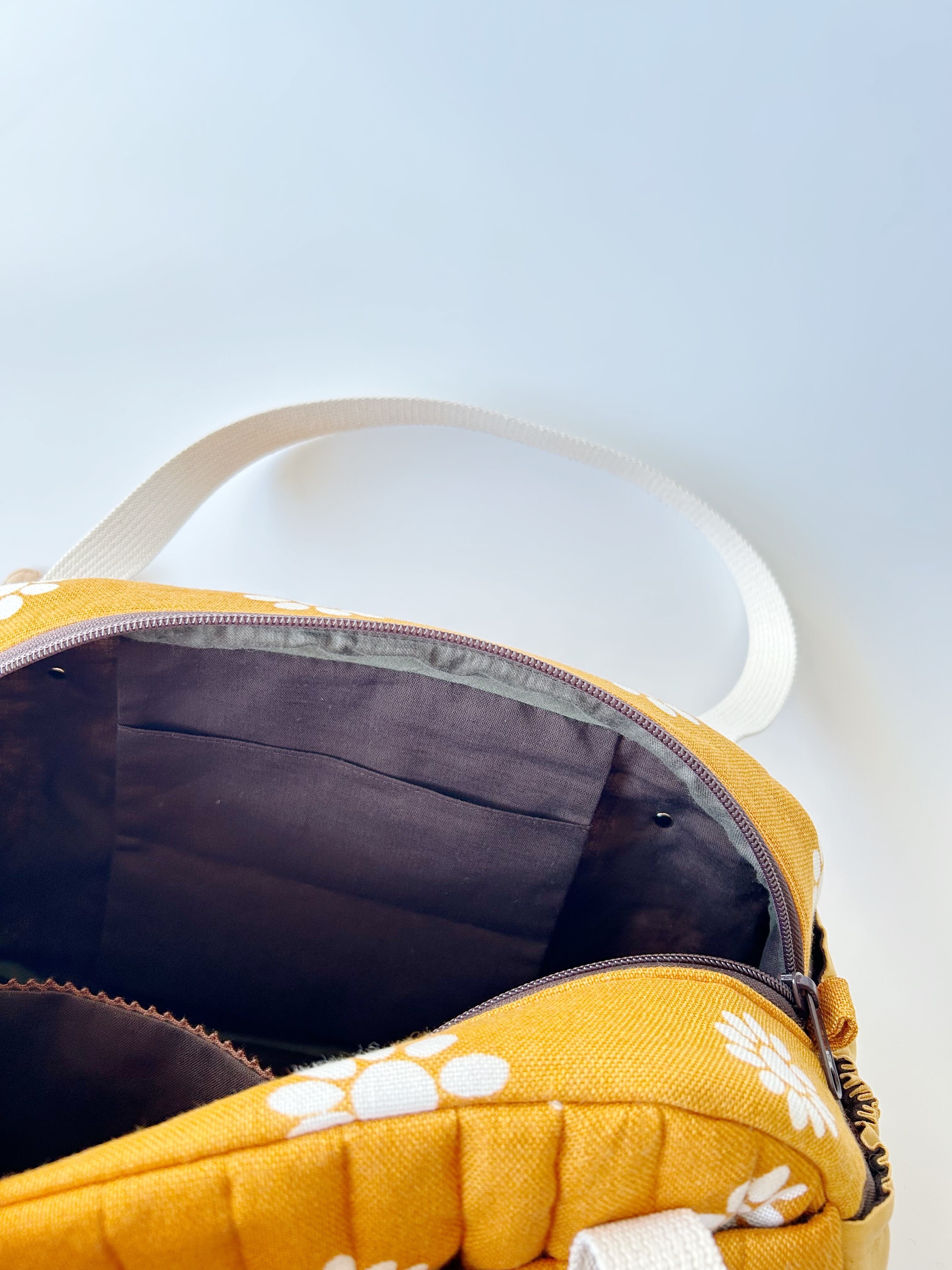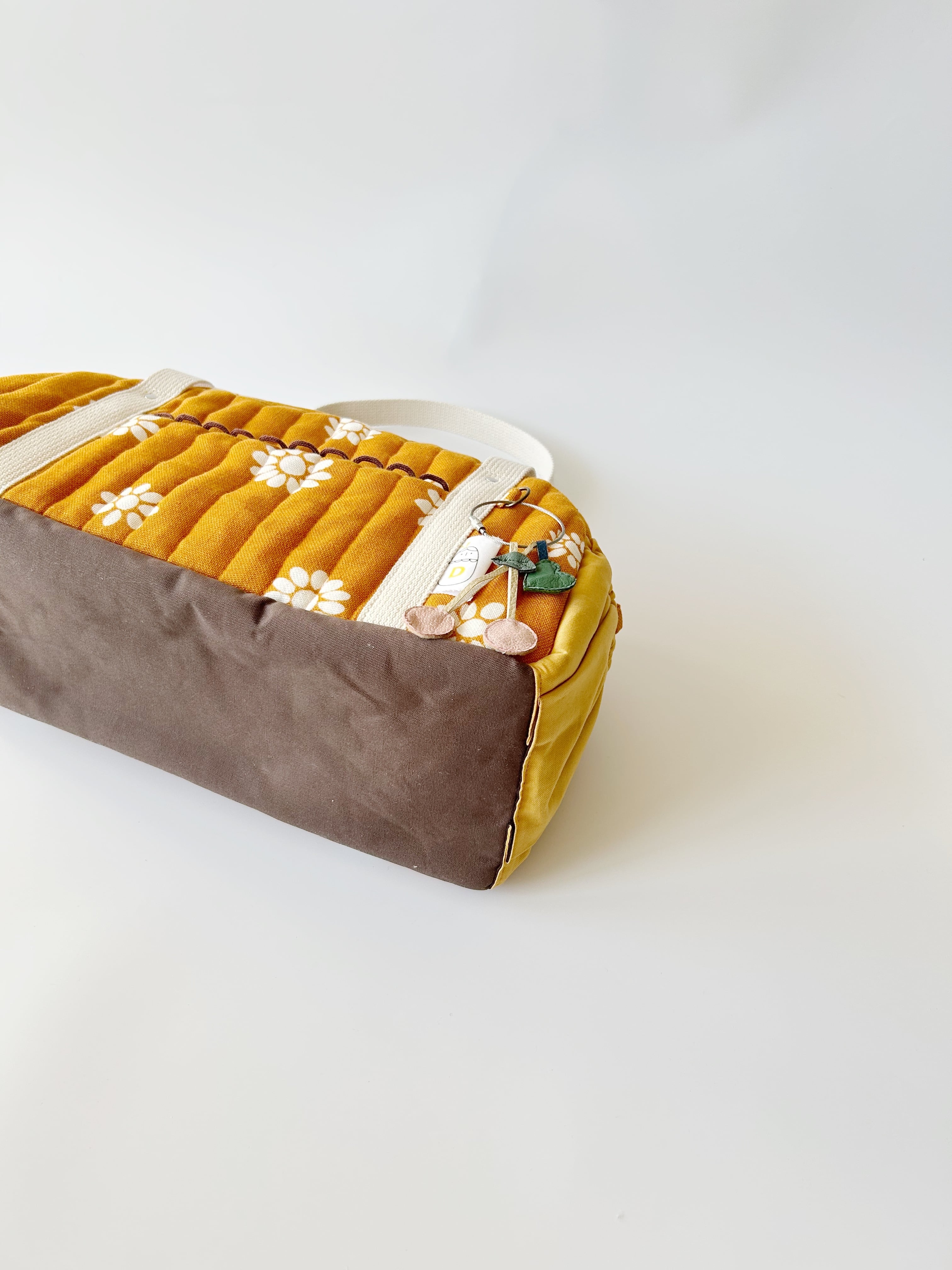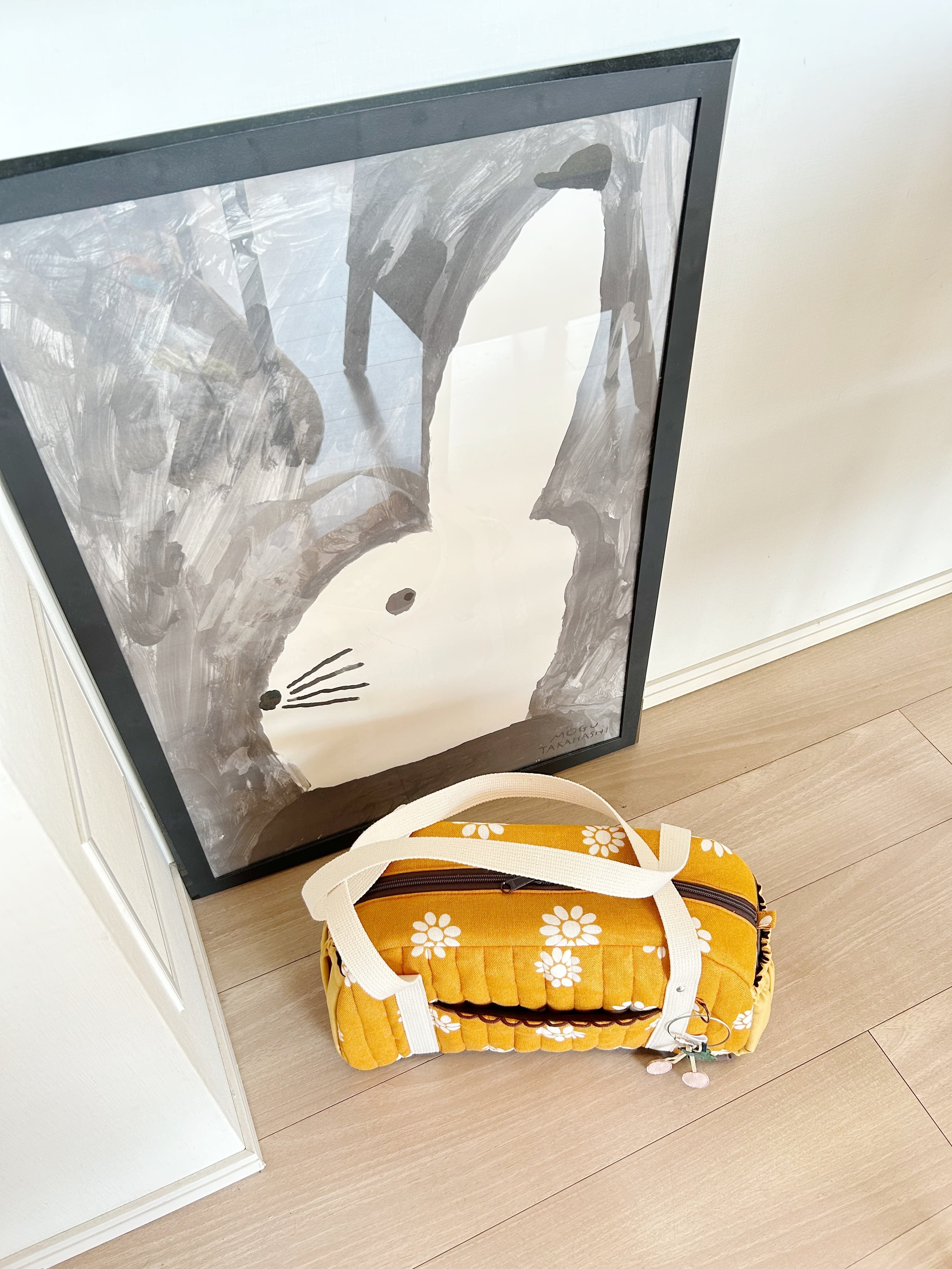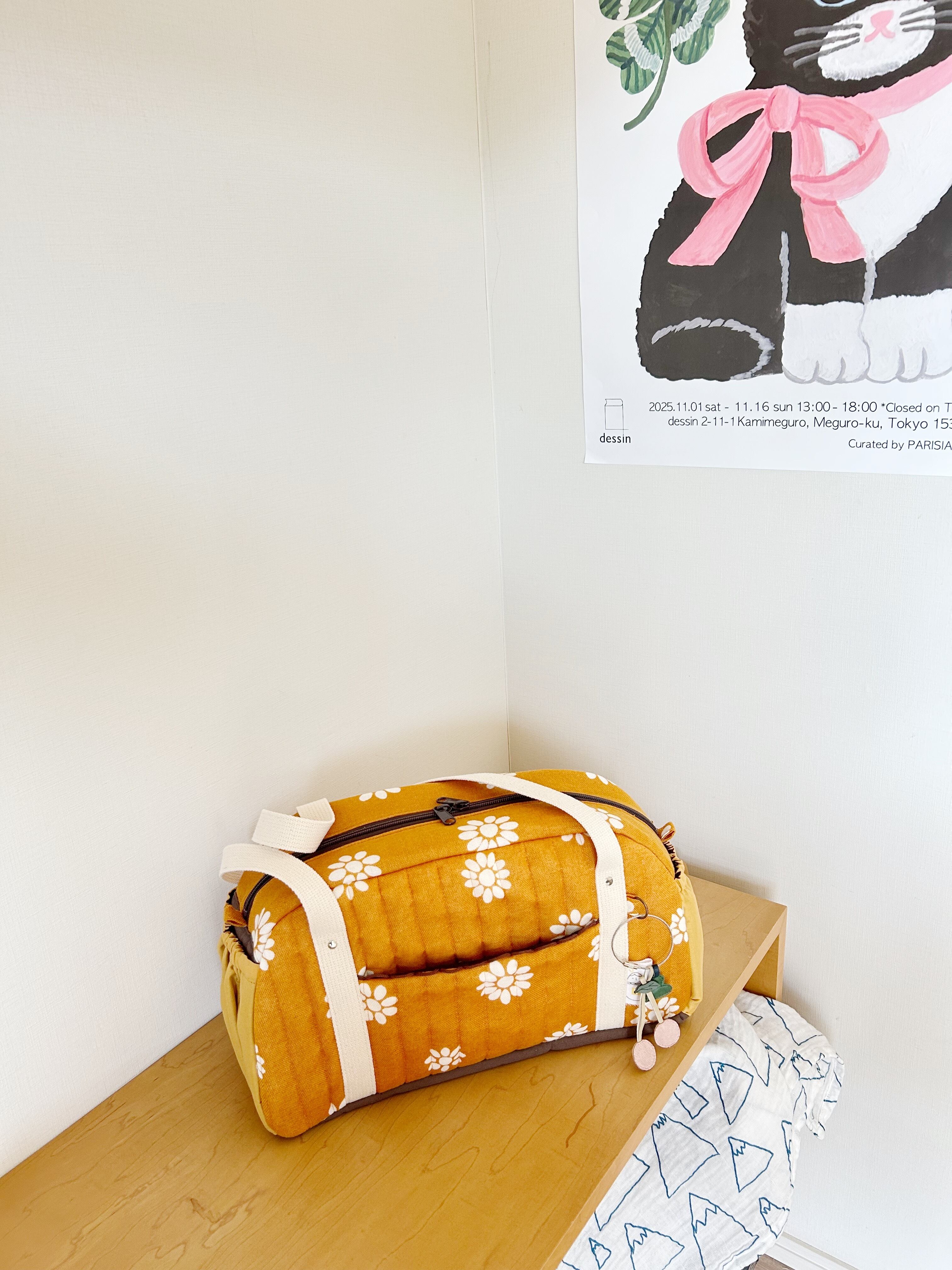 Mサイズは底板を付けてないので、荷物が少ない時はペタンコにしてトートバッグみたいに持ってもかわいいです。