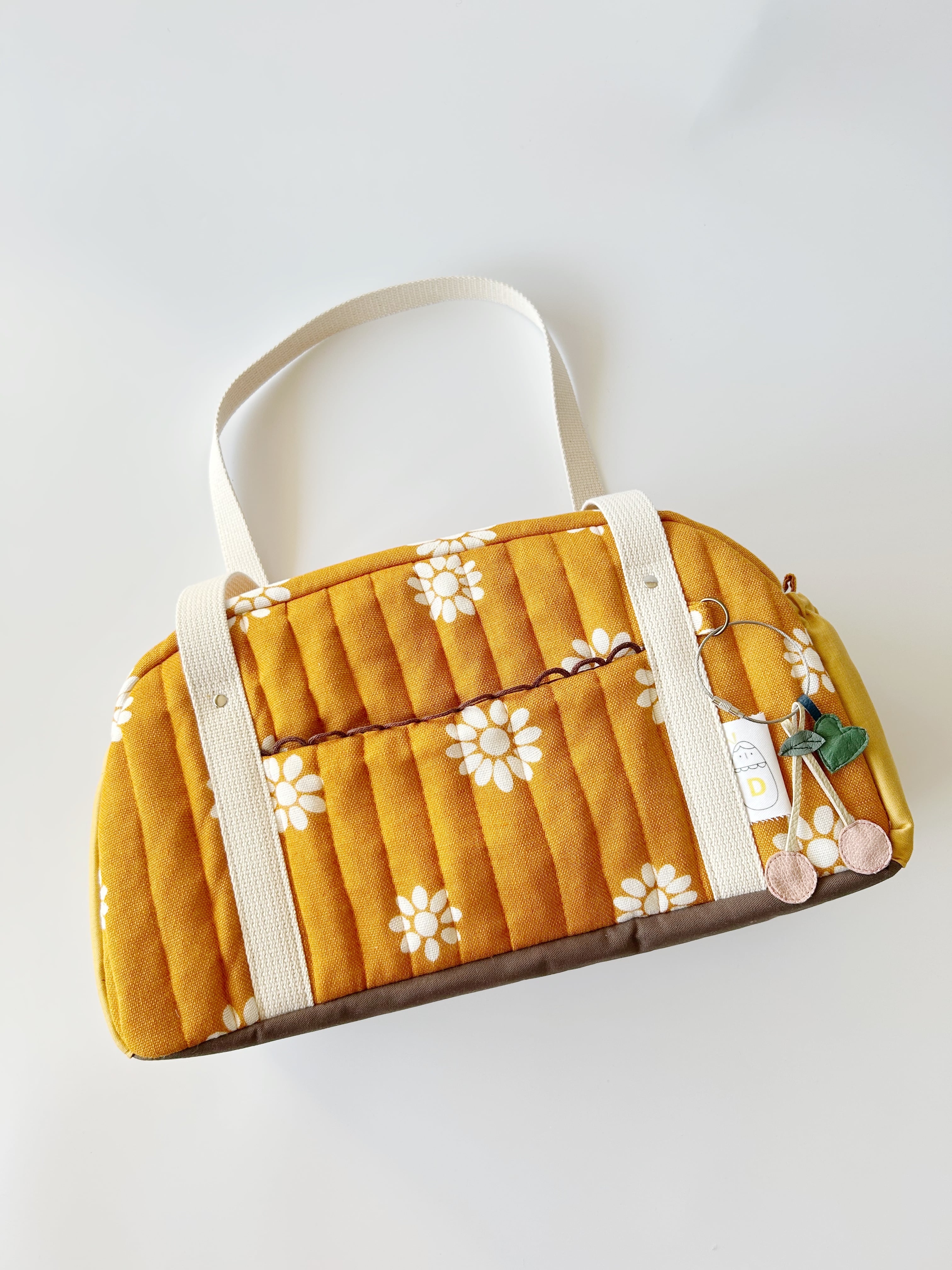 ポケット横にはかわいいオリジナルタブとさくらんぼとハートのチャームが付いてます。
