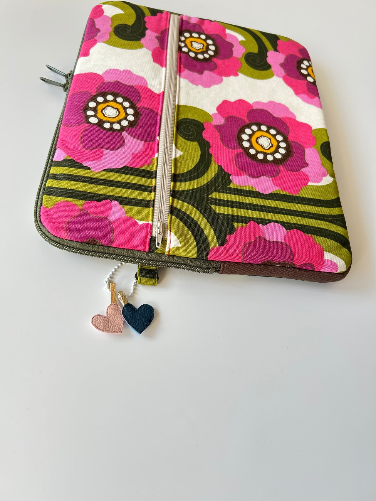 ファスナー、バイアステープなど色合わせがかわいいです。