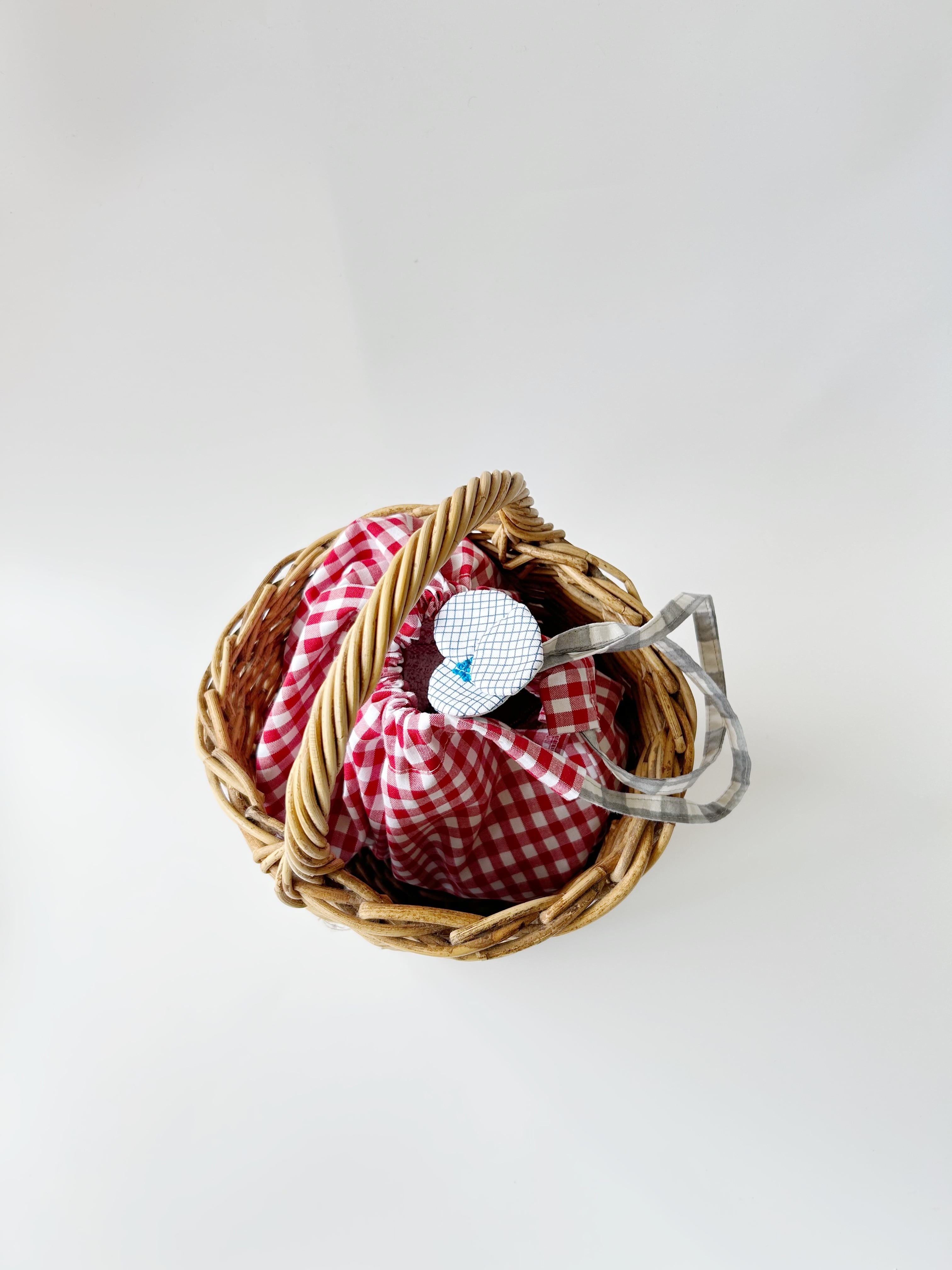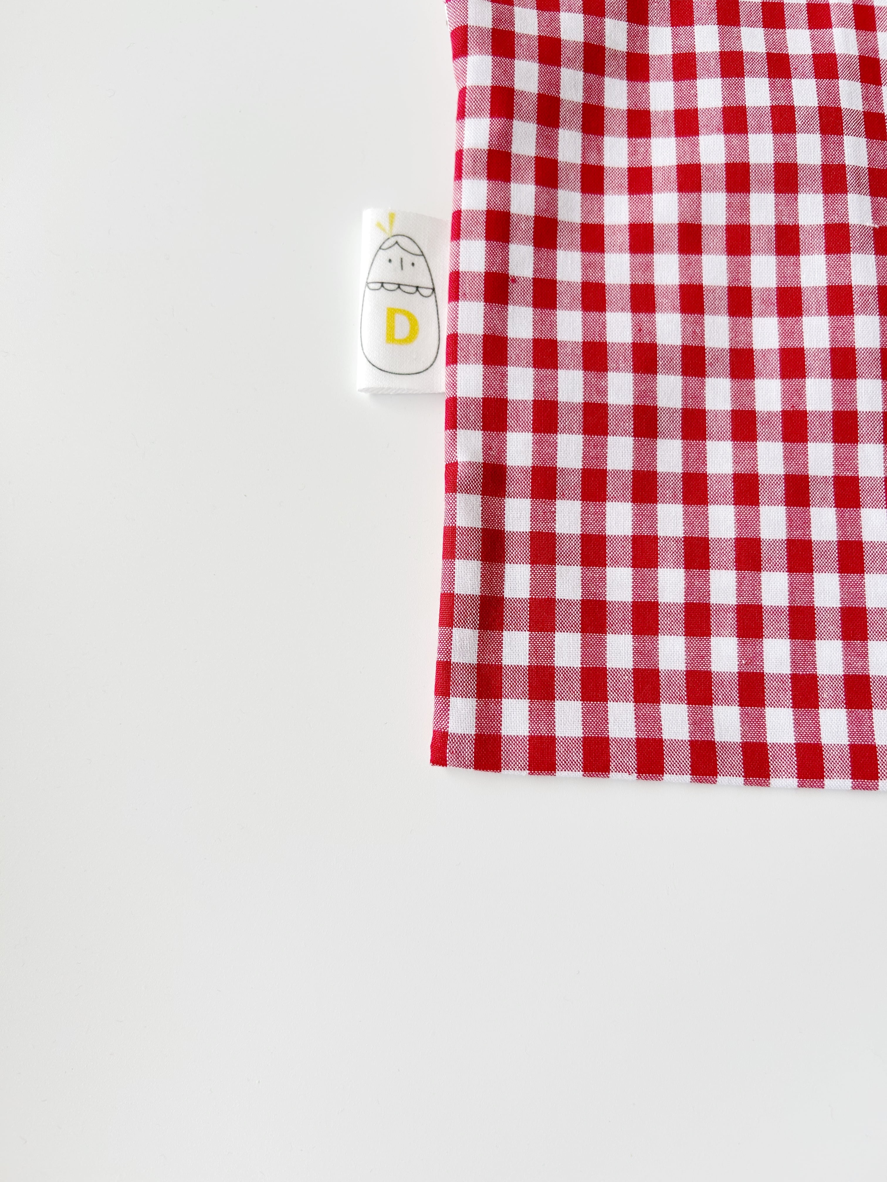 赤色x白色のギンガムチェック柄です。