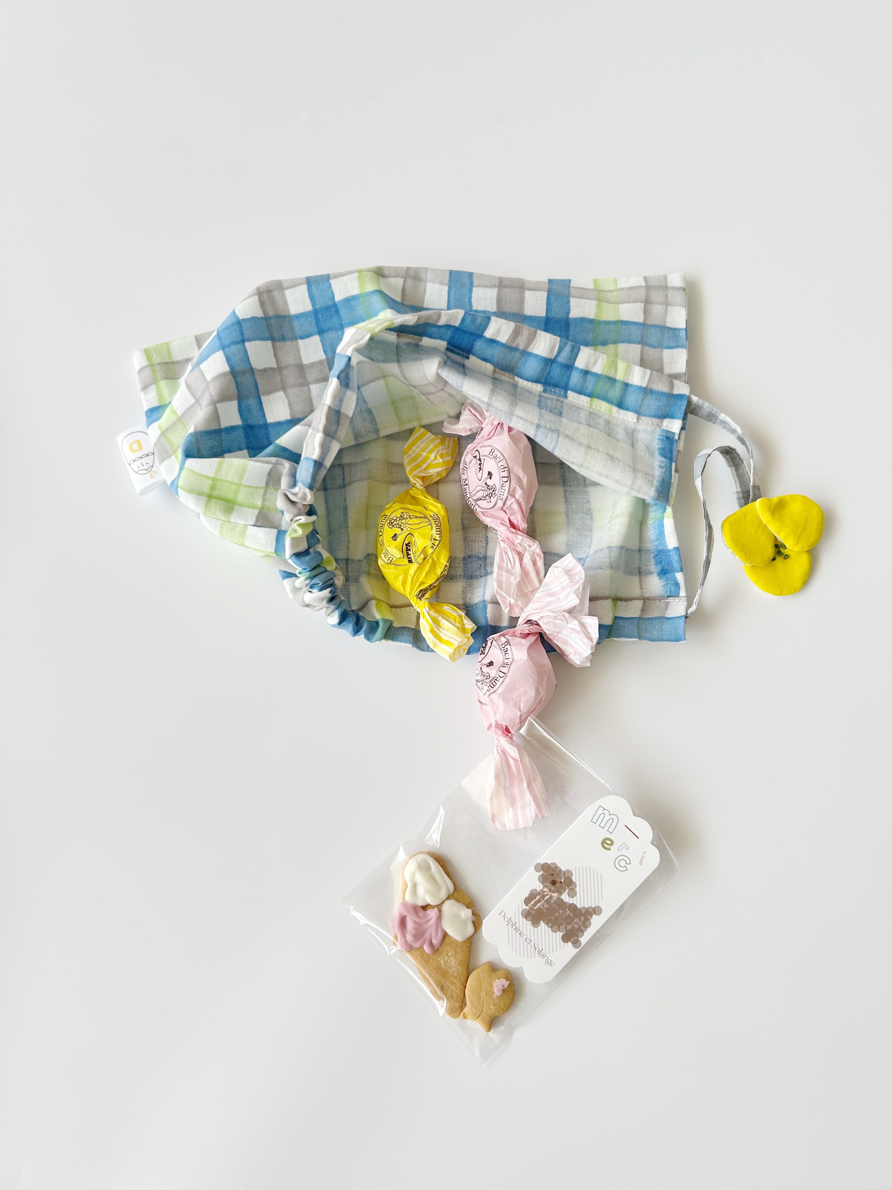 お菓子、ハンカチ、ストール、小物類などを入れやすい大きさです。