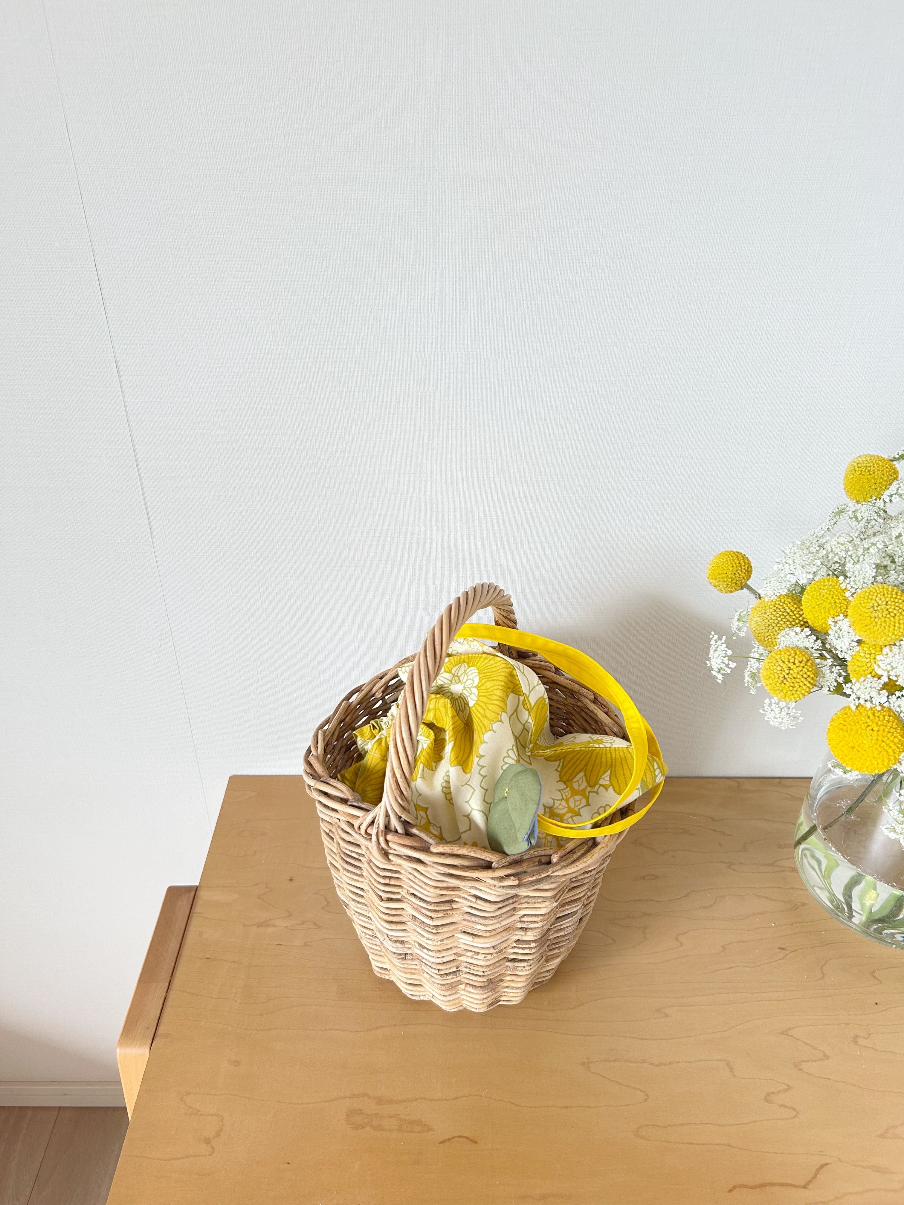 母の日に向けて、ひとつずつ柄や雰囲気の違う巾着を販売します。