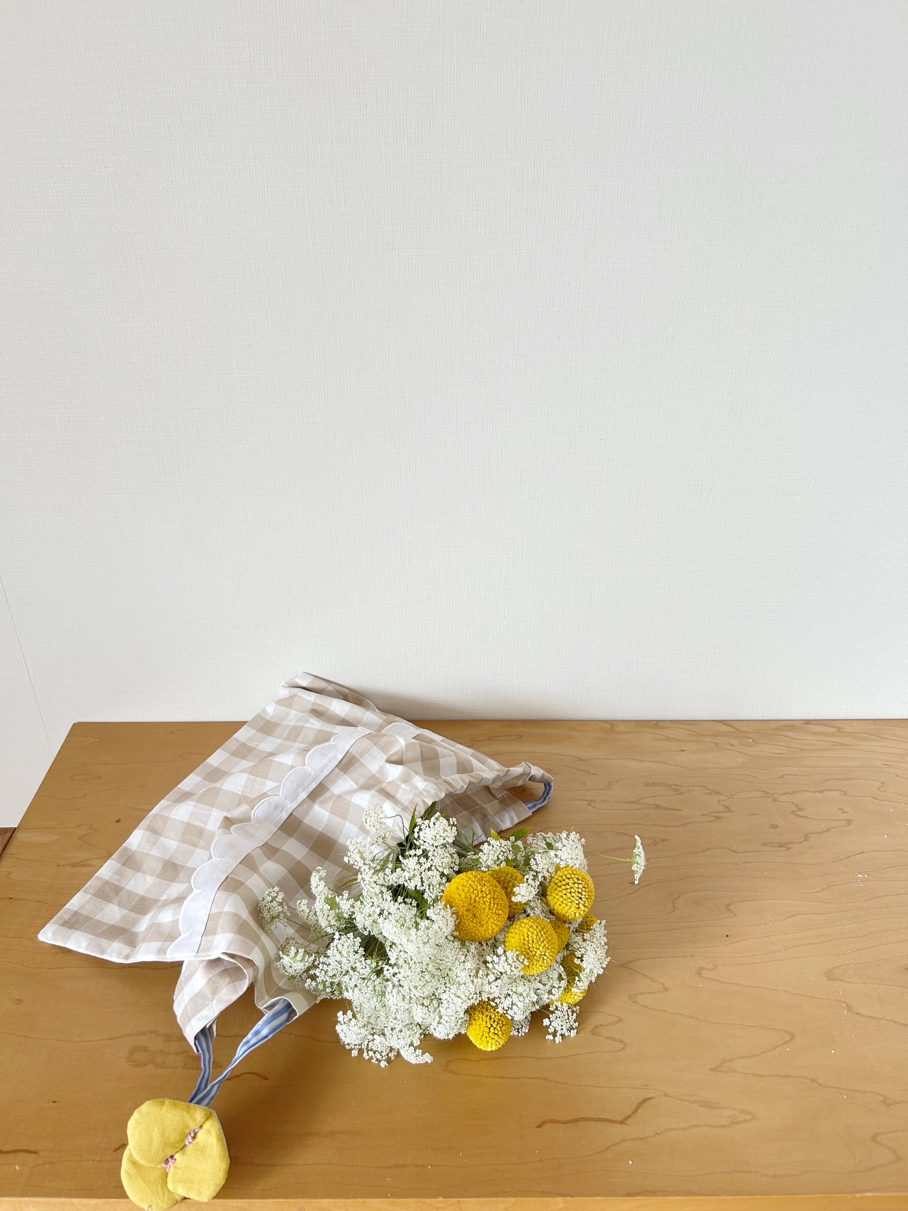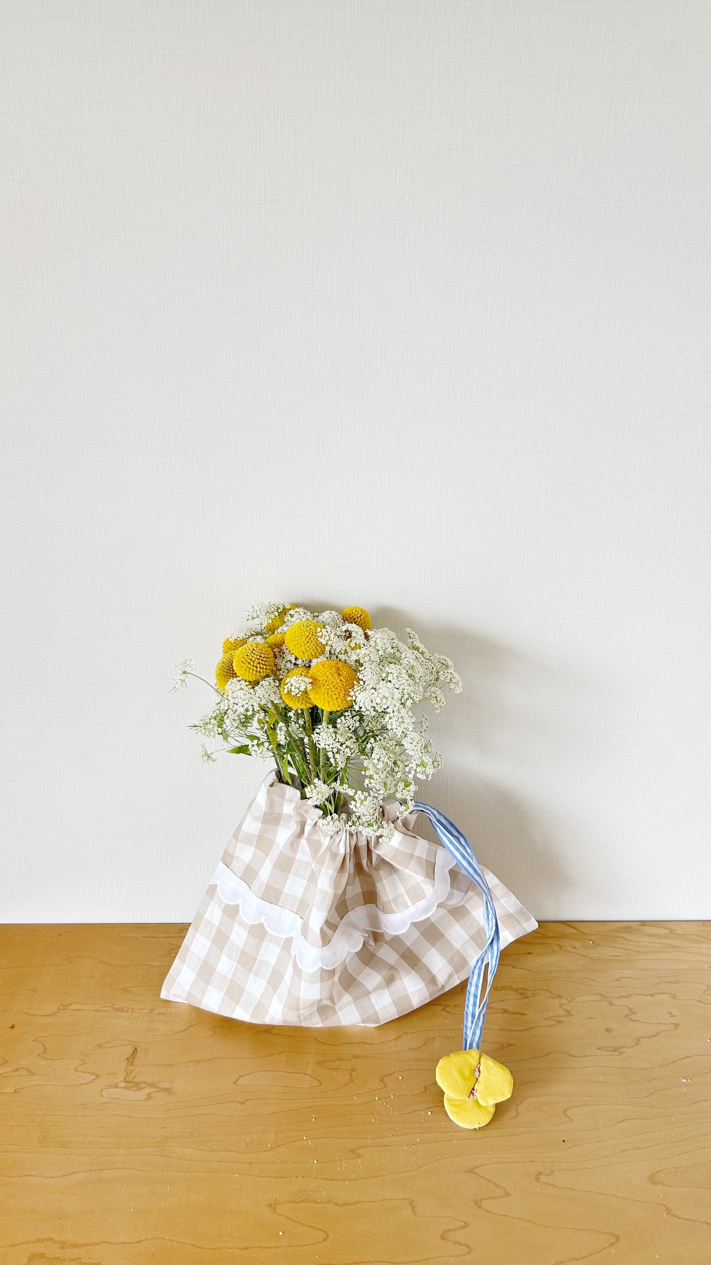 母の日に向けて、ひとつずつ柄や雰囲気の違う巾着を販売します。