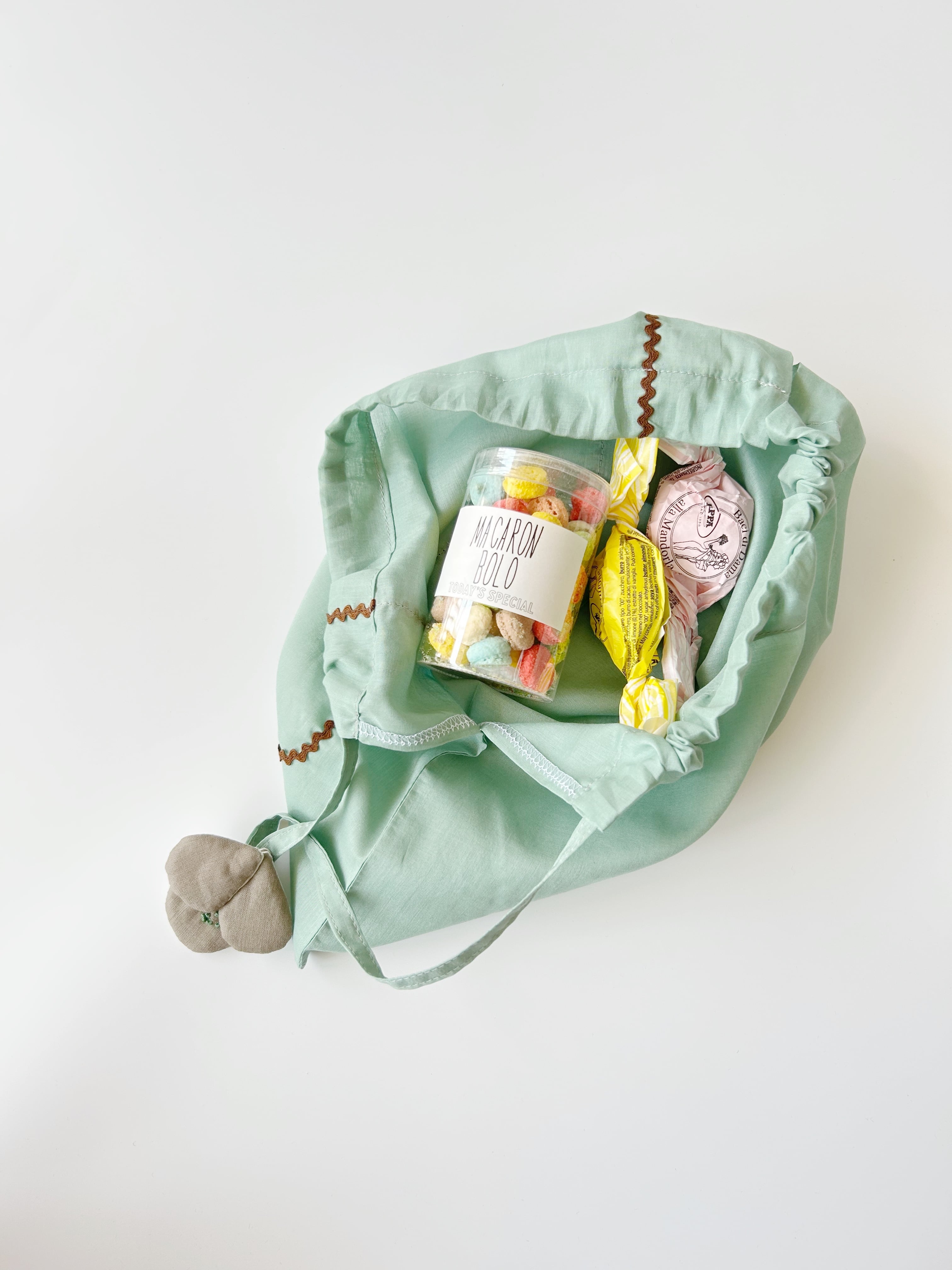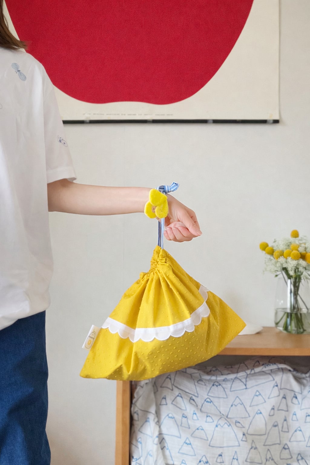 母の日に向けて、ひとつずつ柄や雰囲気の違う巾着を販売します。