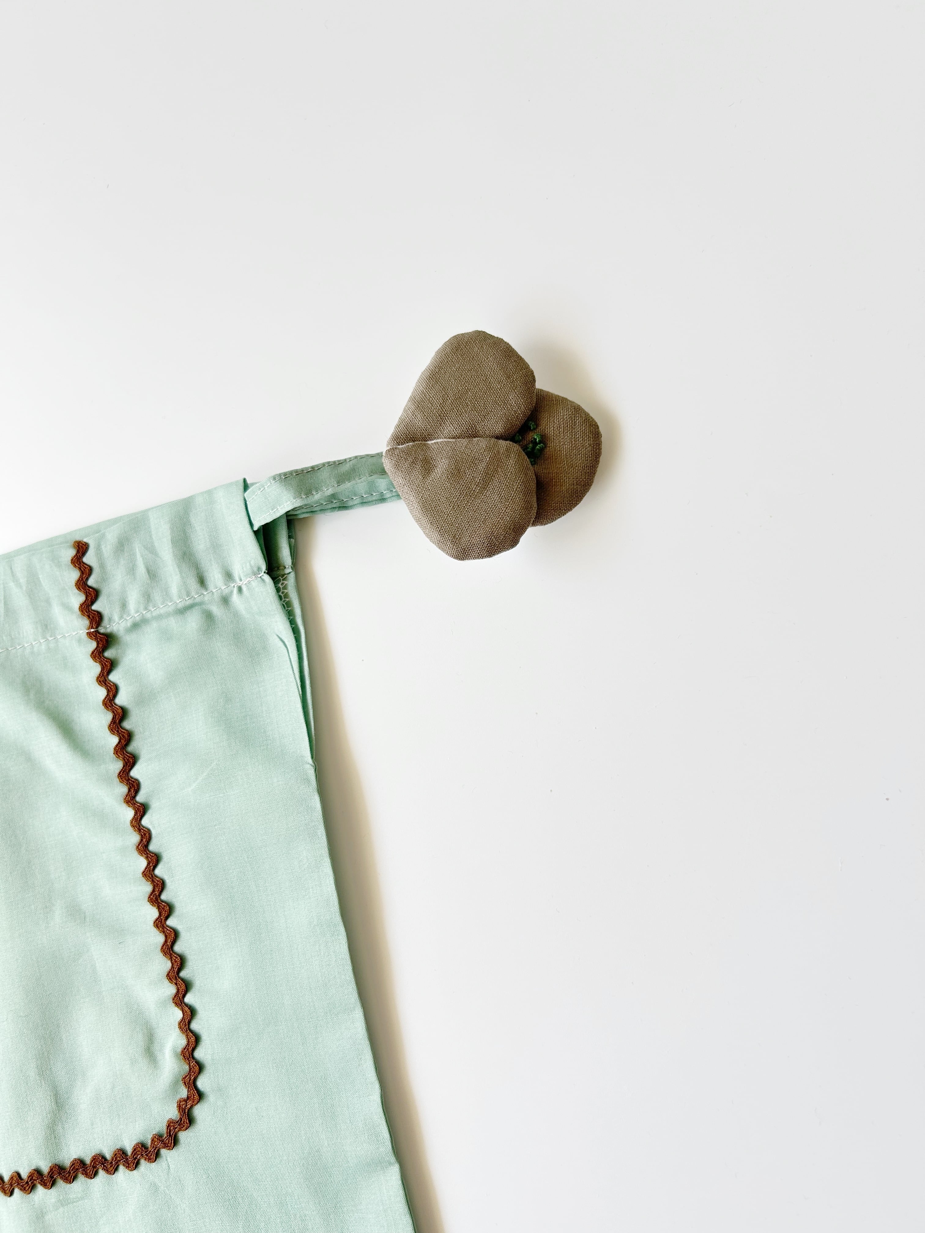 母の日ギフトという事で、紐の先にはお花のアップリケがついてます。