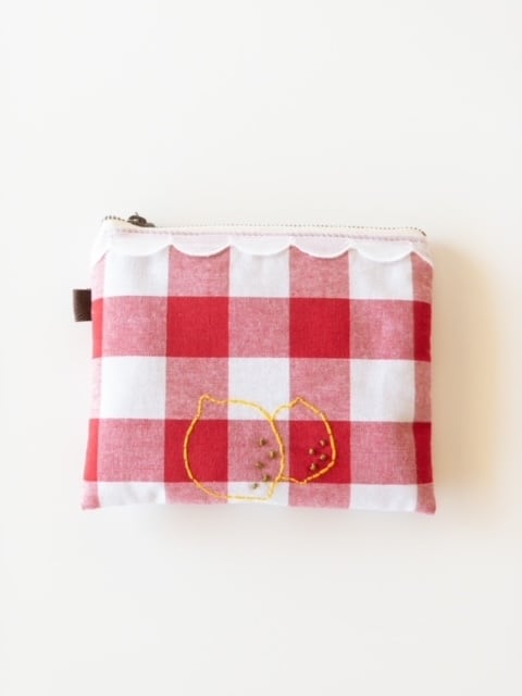 表面にレモンの刺繍をしていて、スカラップレースを上に付けています。